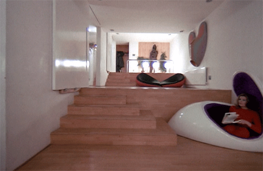 Installed in the sprawling 356 Mission space is part of the set from the artist’s production MOON DUST — monochromatic modular pop-up rooms that look like a combination of a Jetson’s futuristic home and 70’s pods from Clockwork Orange. Placed within these rooms one finds Reeder’s various large-scale paintings that offer textual one-liners or lines of paint. When encountering one of these paintings, are we laughing at ourselves or the joke that Reeder is making about the art world?