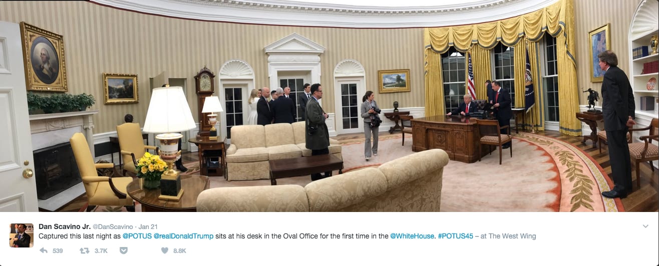 Donald Trump promised he’d do a lot — and quickly — the minute he assumed his post as US President, and one of his very first priorities was evidently to deal with the pressing issue of home décor. On day one of his new job, the former host of The Apprentice undid some changes to the Oval Office made by Barack Obama (who, for the record, waited one and a half years after his inauguration to give the Oval Office its first makeover). The room does not exactly have a fresh look now, but rather has reverted to the past in a visual transformation that underscores how yes, we are indeed entering a rather different, uncanny era.