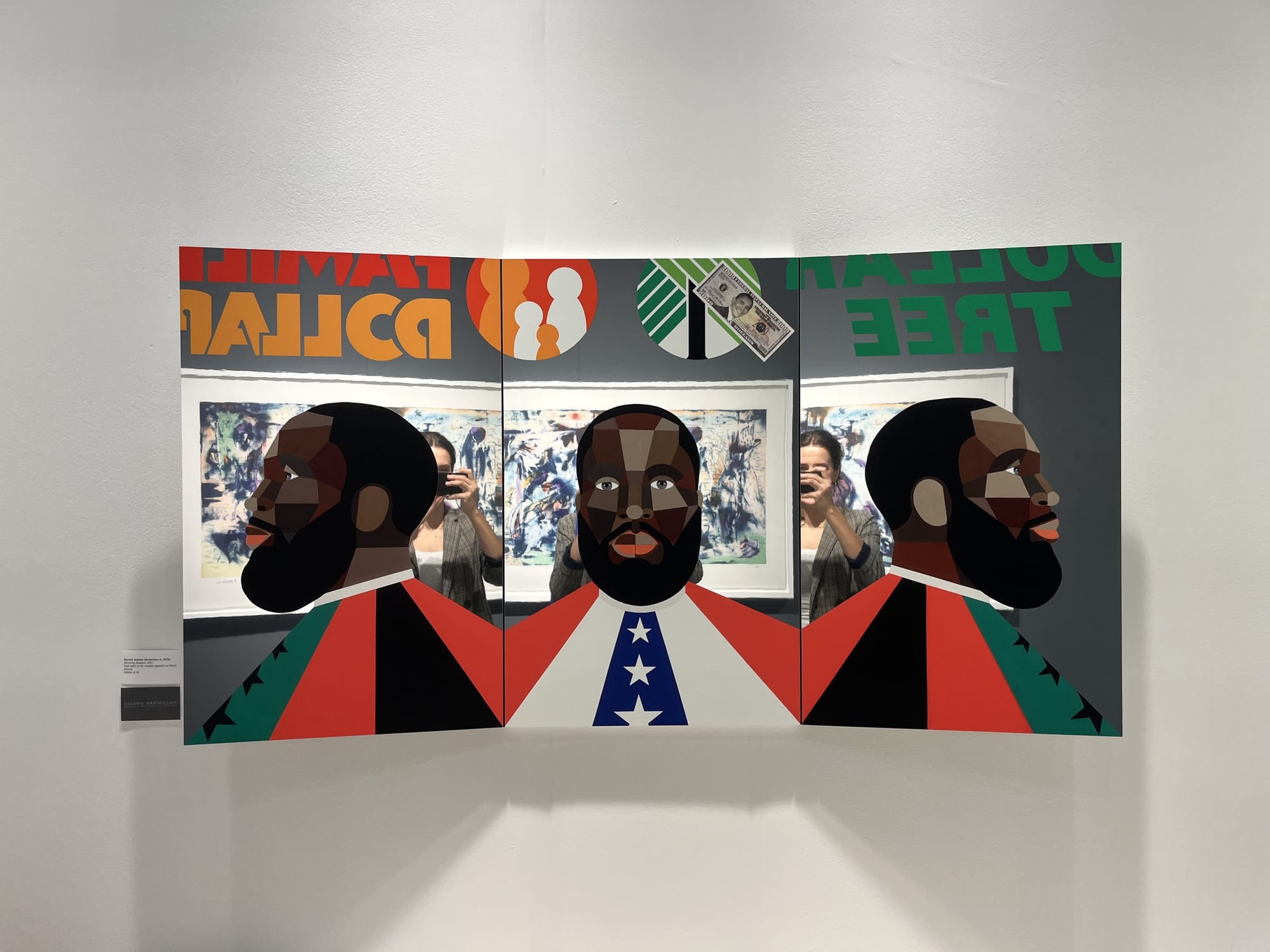 Other galleries exhibited more traditional artworks. Elizabeth Iacullo of Galerie Maximillian in Aspen, Colorado said that the fair is an important opportunity to put their work in front of a New York audience, and the print-focused gallery showed a salable collection of works by artists including David Hockney and Alex Katz. Derrick Adams made another appearance in a small space at the back of Galerie Maximillian's booth with a mirrored self-portrait at the barber shop. Iacullo said she loves the piece because of it's interactive component, a welcome break from the show's slew of matte works on paper.