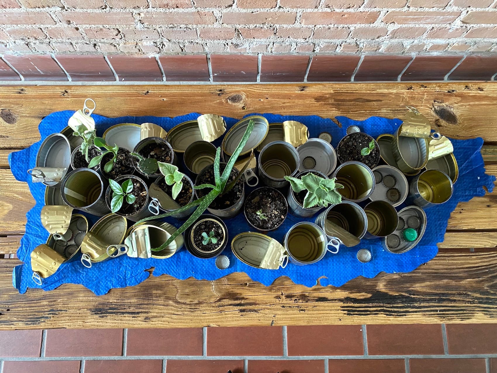 Along with mourning, transformation is a key concept in the exhibition. Yolanda Velázquez’s installation Terrario (2021), outside the galleries, offers an opportunity to meditate on change and continuity. In this terrarium, plants grow in cans on a wooden bench; above them, hanging blue tarps echo the natural disasters the island has faced and the resilience of its inhabitants.