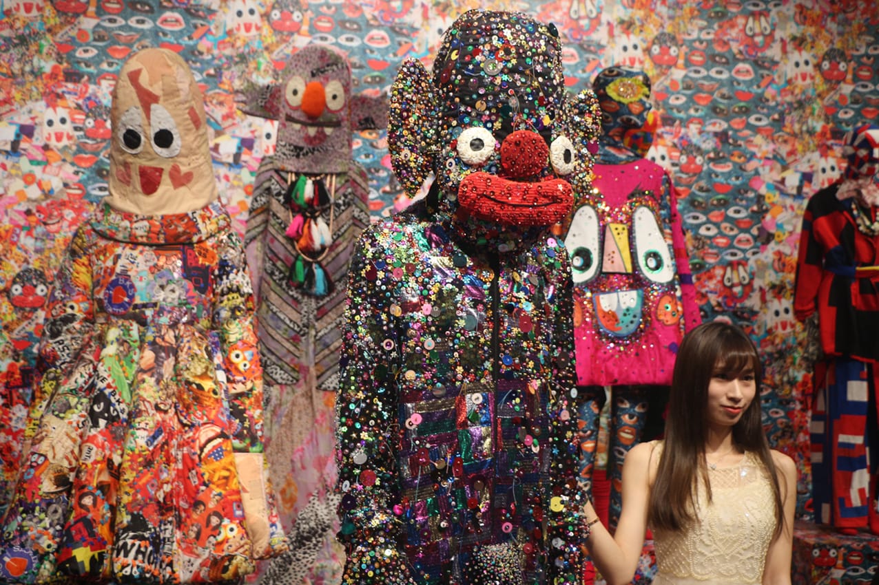 The most compelling backdrops for taking pictures within the labyrinthine exhibition space were the larger-than-life and endearingly goofy. Henrick Vibskov’s Gravity Orchestra (2018) was a full ensemble of elongated Muppet-like characters donning black and white evening suits, hung upside-down from a towering steel grid; it was a great installation for hide-and-seek. Similarly, WORLD a new perspective (2018), a crowd of stuffed gentle giants stitched together by Bas Kosters in a mind-blowing patchwork, had people posing beside them as if accompanied by a gauche friend who had tagged along.