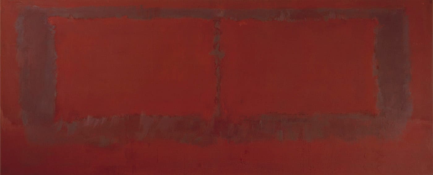 My first occasion to see a significant exhibition by Rothko occurred during a trip to New York City in December 1970. I had met with a noteworthy painter who suggested I visit the memorial exhibition of last paintings at the Marlborough Gallery on 57th Street. Upon entering this formidable space, my first observation was that the paint on many of the unfinished surfaces was thinner than I expected, much different than the impasto surfaces on the Rothko paintings I had seen elsewhere. The ineluctable mixture of gray, brown, and black tones was impressive. Accompanying the exhibition was a selection of late sculpture by Giacometti, primarily the large-scale standing and walking figures. As a younger artist, I was taken by the poetic elusiveness between Rothko and Giacometti. The existential context of the installation seemed to encapsulate the dolorous, unexpected circumstances of Rothko’s death earlier that year, yet it concomitantly augmented the delicate force behind these intensely restrained final paintings.