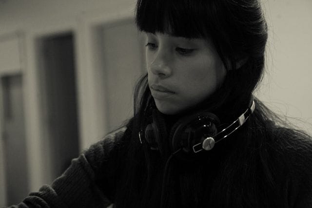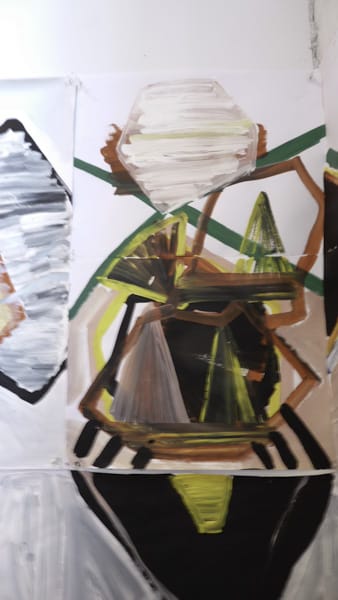 Julie Curtiss, a French painter, spent the time mostly with her headphones on listening to downbeat drum’n’bass. At the end of the day, Curtiss presented several precisely executed and engaging paintings that reminded me of fantasy fiction.