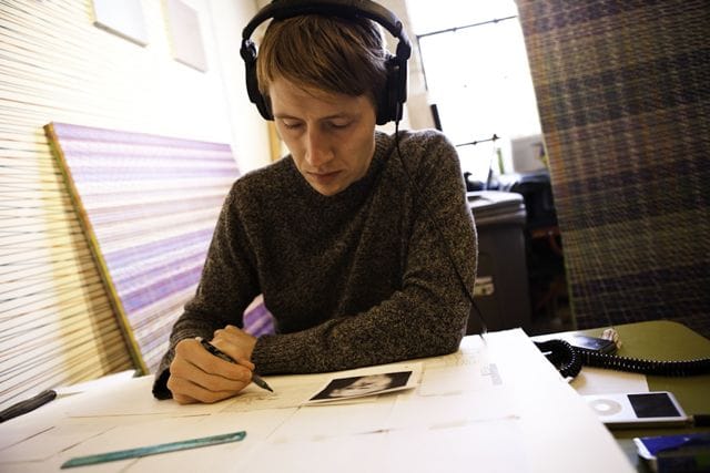 Chris McGee and Joey Parlett staked their own space separated from others. They claimed they both needed peace and quiet in order to create. They quickly became known in the group as the “Silent Boys,” for their seclusion and silent process. Parlett came to Camel with the idea to do a series of drawings of Eadweard Muybridge — one drawing every hour. Being a perfectionist, he kept a tracking chart and finished the last dot on the 24th drawing within the final moments of the art marathon.