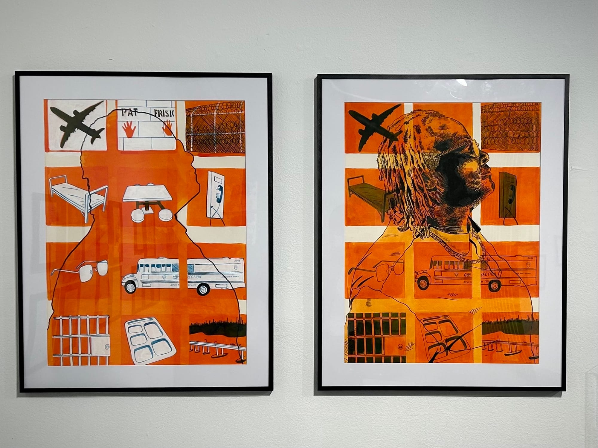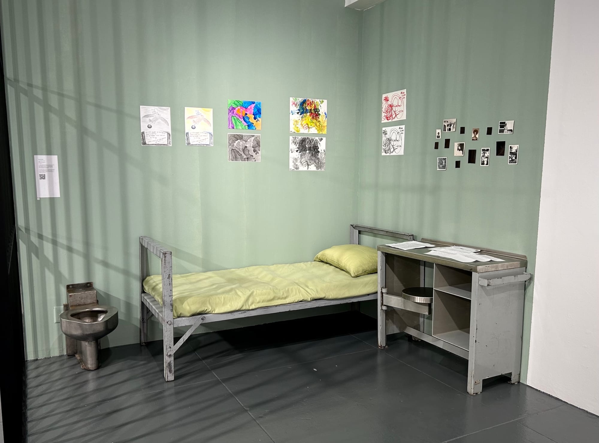 “People's voices are censored, people's bodies are censored, people's visits are censored, people's ability to read things are censored,” Kaba continued. These mechanisms of erasure are explored through the exhibition’s multitude of visual, audio, and interactive installations such as a model prison mailroom, a library of radical texts by Black authors, an oral history listening booth, a reconstructed prison cell, and numerous works of currently and recently imprisoned artists and authors that focus on their experiences with carceral censorship.