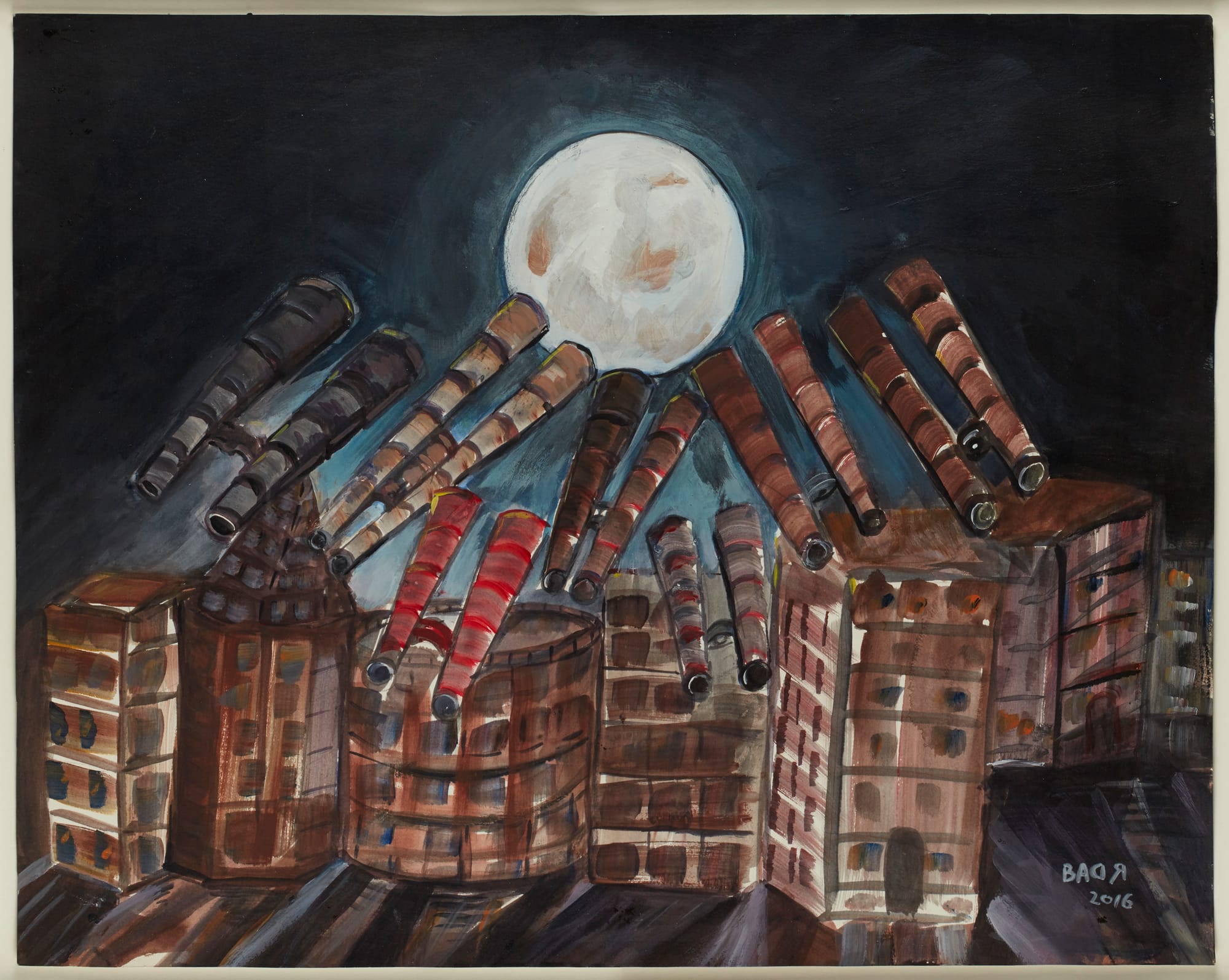 Perhaps the most inspiring works in the exhibition are those made with an eye to maintaining a sense of normalcy, even optimism, behind bars, testaments to the unquashable hope people nurture in even the most oppressive circumstances. Alexey Wangenheim’s postcards — beautiful miniatures of eclipses and the polar lights — were made in Stalin’s Gulag. Sent to his daughter, they were meant as educational snippets, heart-wrenching documents of a devoted father struggling to remain present during his absence — an absence that concluded with his death in a mass execution of prisoners in 1937.