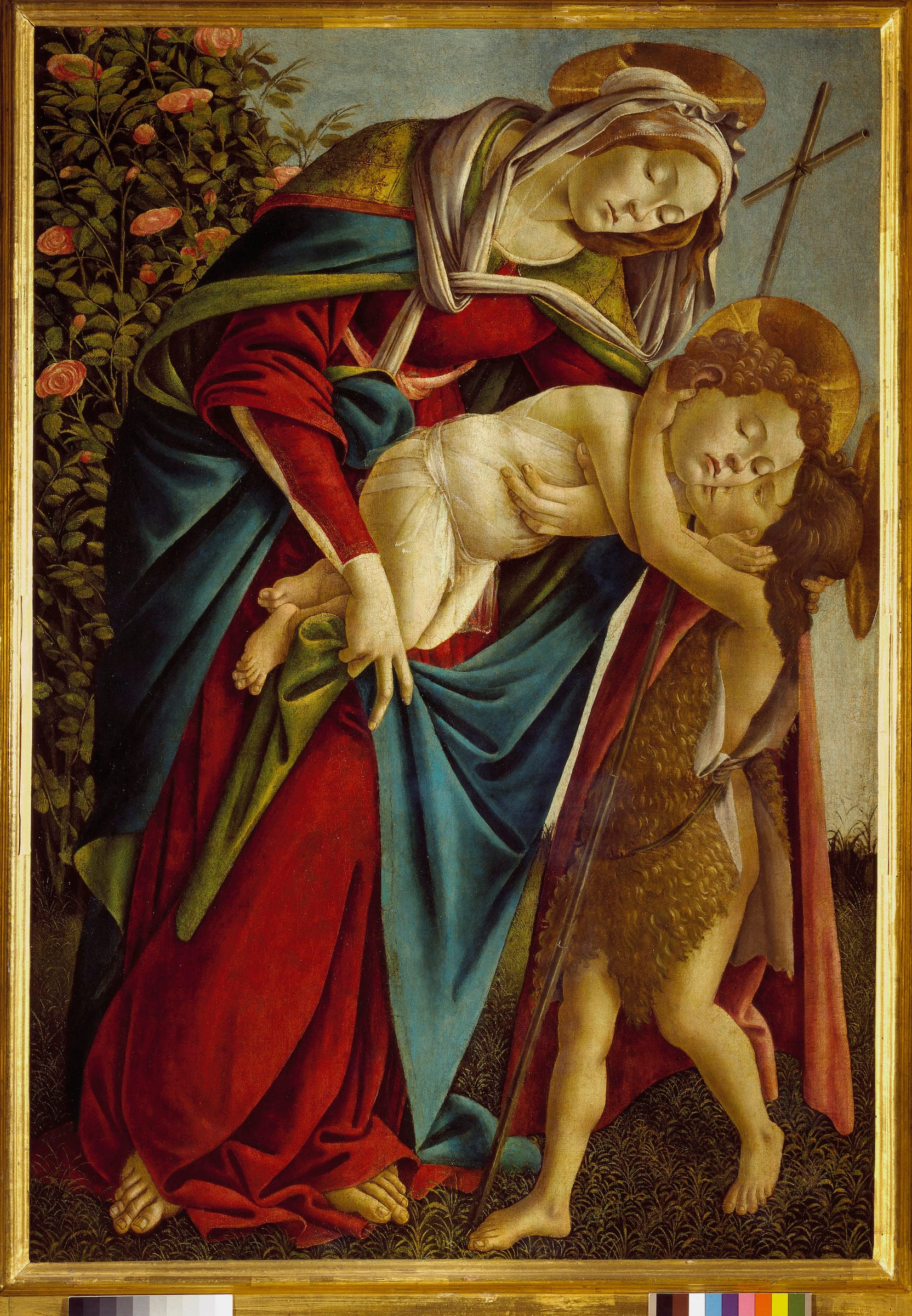 The original by the hand of Botticelli himself, "Virgin and Child with the Young St. John the Baptist" (1490–95), is owned by the Uffizi Galleries in Florence and is now on loan to the Château de Chambord.