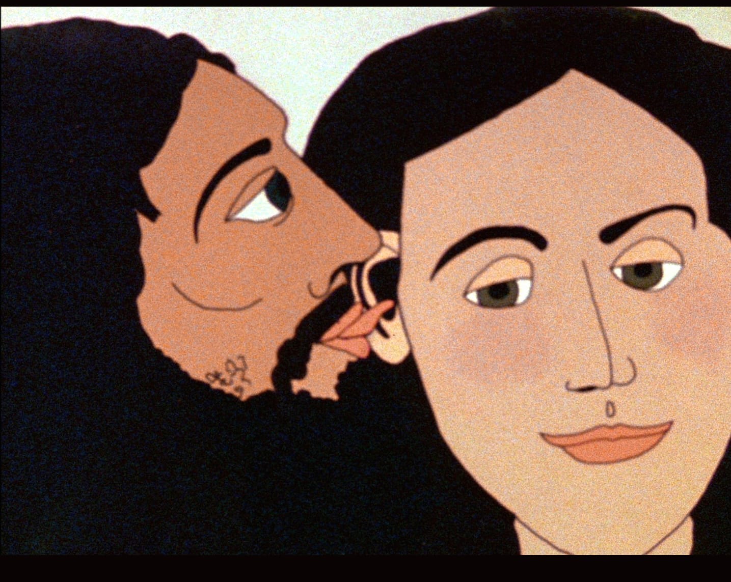 In the “Introspection” section, we have the rare chance to see rotoscope artist Jeff Scher present his hypnotizing daydream Milk of Amnesia (1992) on a celluloid print. While Scher’s aesthetic is technically more “pop art” than some of the other artists featured, Milk of Amnesia is among the most psychedelic shorts on offer. Hand-painted and rotoscoped to match film shot on 16mm, Scher’s frames are vibrantly colorful and meticulously detailed, but the mirage is exploded whenever he slots in a two-dimensional photograph or shaded pencil drawing, rescaling the dimensionality of the pictures. Scher is also a master at using rotoscope to slow down and speed up the audience’s perception of time.