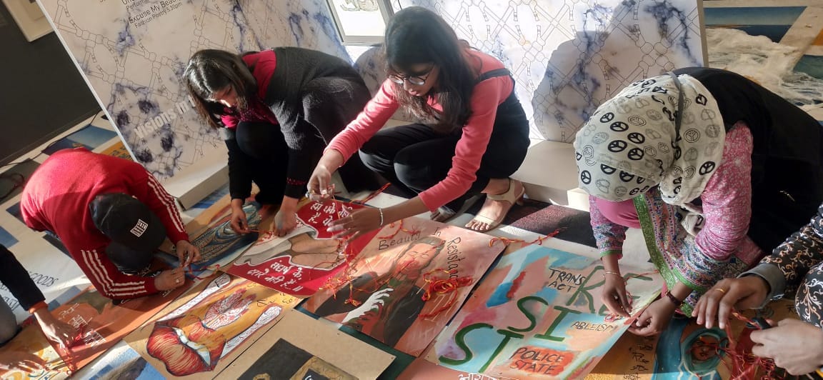 According to an Instagram post by Post-Art Project, the police said that they were “responding to an anonymous complaint made about ‘artwork being prepared by someone wearing clothes resembling the women of Shaheen Bagh.’” The post also says that the police took issue with the inclusion of lines of Urdu poetry in one of the paintings in the installation.