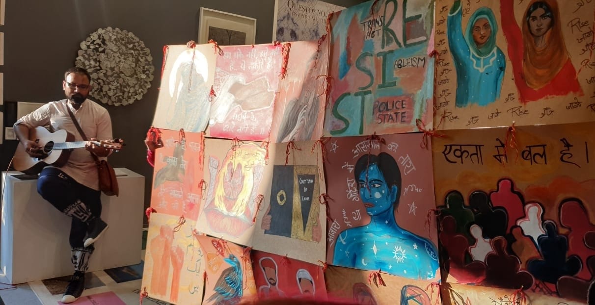 An anonymous complaint brought Delhi police to the India Art Fair, where an installation featuring slogans of resistance, Muslim hijabi women, and an Urdu protest song were deemed “inflammatory.”