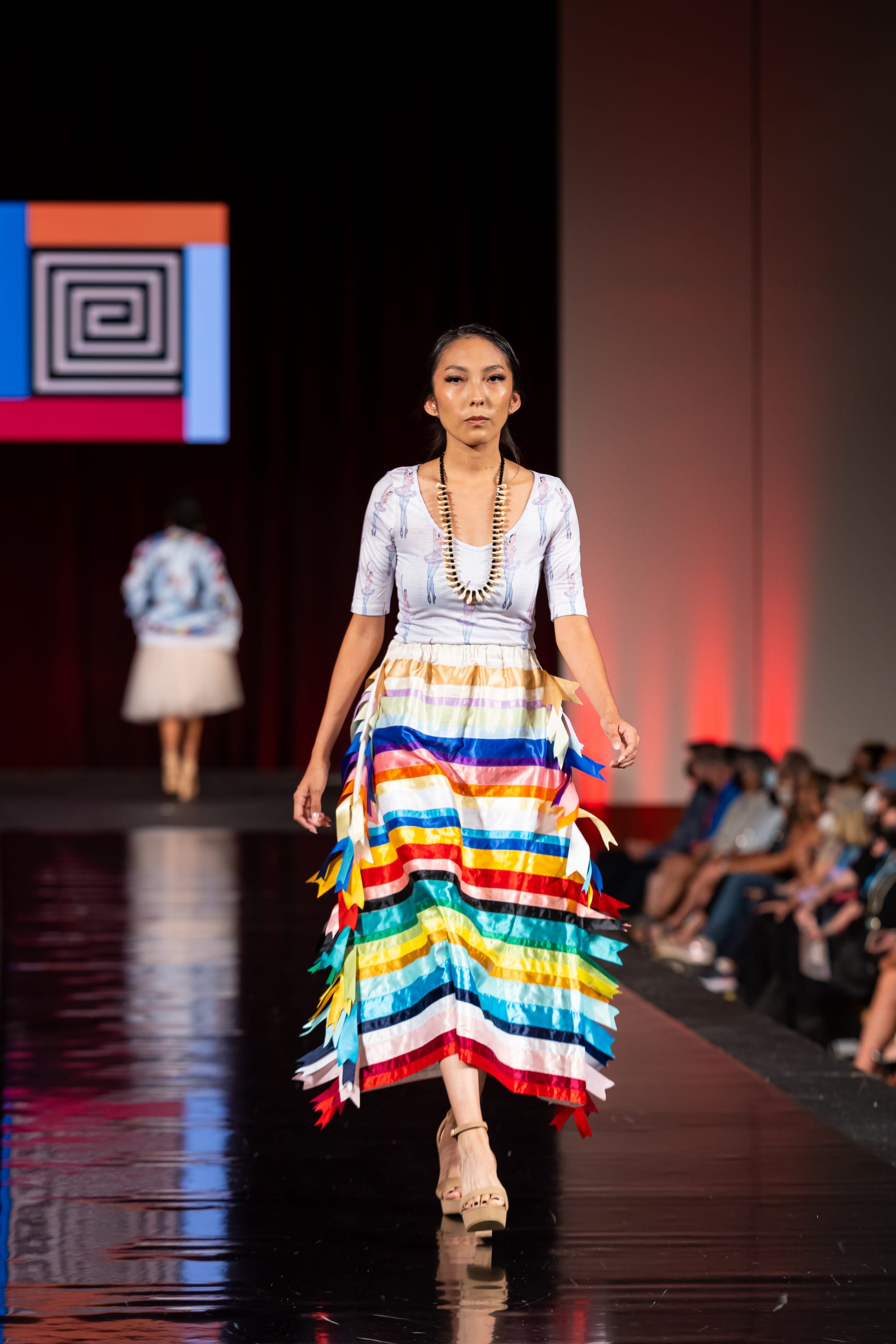 Bear Robe has been working overtime on a grand reversal of that story. She’s the founding director of the Southwest Association for Indian Arts (SWAIA) Indigenous Fashion Show, an eight-year-old tradition that annually closes out Santa Fe Indian Market, the world’s largest Native American arts festival.