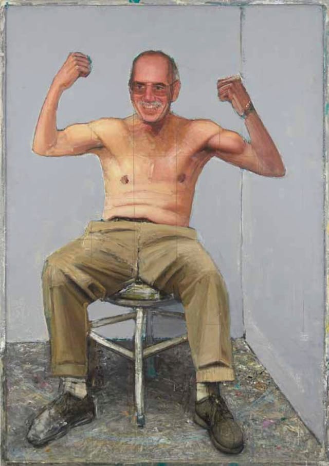 Gregory Gillespie, “Self Portrait Triumphant, 2” (2000), oil on panel, 60 1⁄2 x 42 1⁄2 inches (click to enlarge)