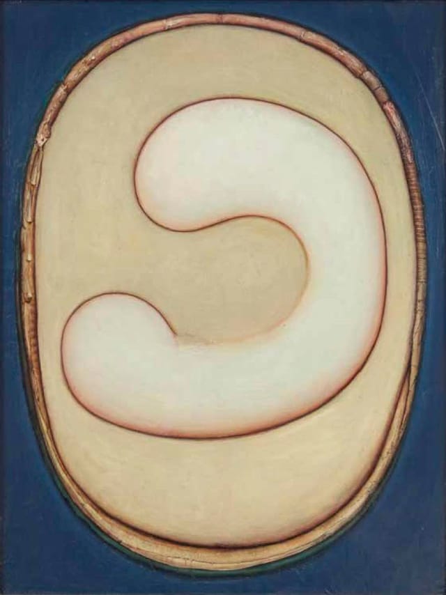 Gregory Gillespie, “Yin Yang” (1995), oil on wood, 34 3⁄4 x 31 1⁄2 inches
