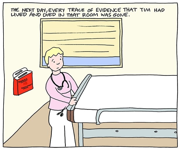 At a panel discussion about graphic medicine held at the NLM earlier this month — live-streamed and archived on the library’s website — Dr. Michael Green, a physician, bioethicist, and professor at Penn State University, said Forney’s DSM chart has proven helpful in teaching his students. (Green created the lesson plans for the library’s Graphic Medicine website.) MK Czerwiec, a nurse who began making comics while working in an AIDS unit in the 1990s, compared graphic medicine to airline safety cards, transcending the barriers of language. The separate speech and thought bubbles are particularly useful, she noted, in describing the delicate situations in which healthcare workers often find themselves. Toward the end of the conversation, Green said researchers are also trying to figure out whether these kinds of books can have an impact on health literacy, and perhaps even health outcomes.