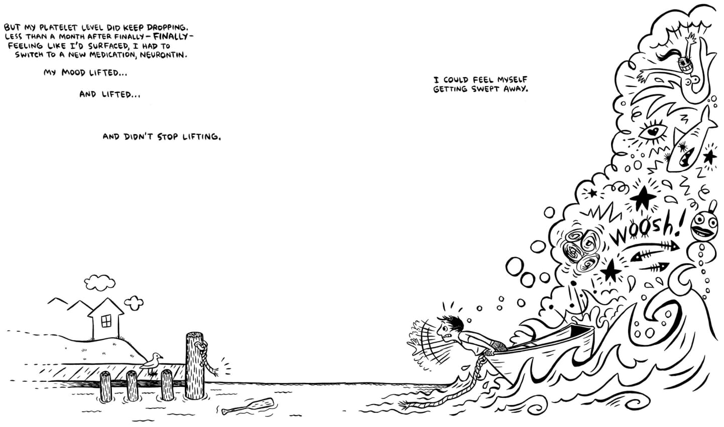 Six years after publishing Marbles, Forney is coming out with a follow-up graphic novel. Scheduled for publication in May, Rock Steady: Brilliant Advice From My Bipolar Life is a guide to “maintaining stability with a mood disorder,” Forney said, “with information on therapies, red flags, insomnia, and how to take care of yourself and keep yourself balanced. I’m treating it as a kind of reference book. It even has an index!” The National Library of Medicine will no doubt add it, too, to its growing collection, where it will serve as an educational tool for generations to come.