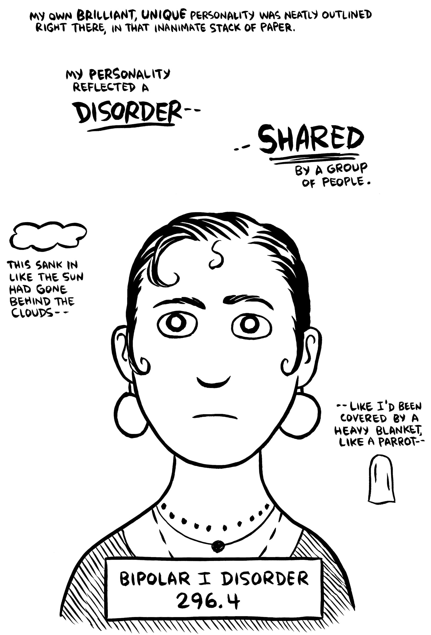 Published in 2012, Marbles is a medical memoir in the form of a graphic novel, in which Forney recounts her personal experiences living with bipolar disorder. As she ponders the mental health of creative people throughout history, like Vincent van Gogh and Georgia O’Keeffe, Forney theorizes how a mood disorder diagnosis affects a person’s view of themselves and their capacity for creativity. But it’s not all introspective philosophizing. Forney also offers advice on how to swallow pills in one gulp, for instance, and breaks down the Diagnostic and Statistical Manual of Mental Disorders (DSM) definitions of mood disorders into a digestible graphic.