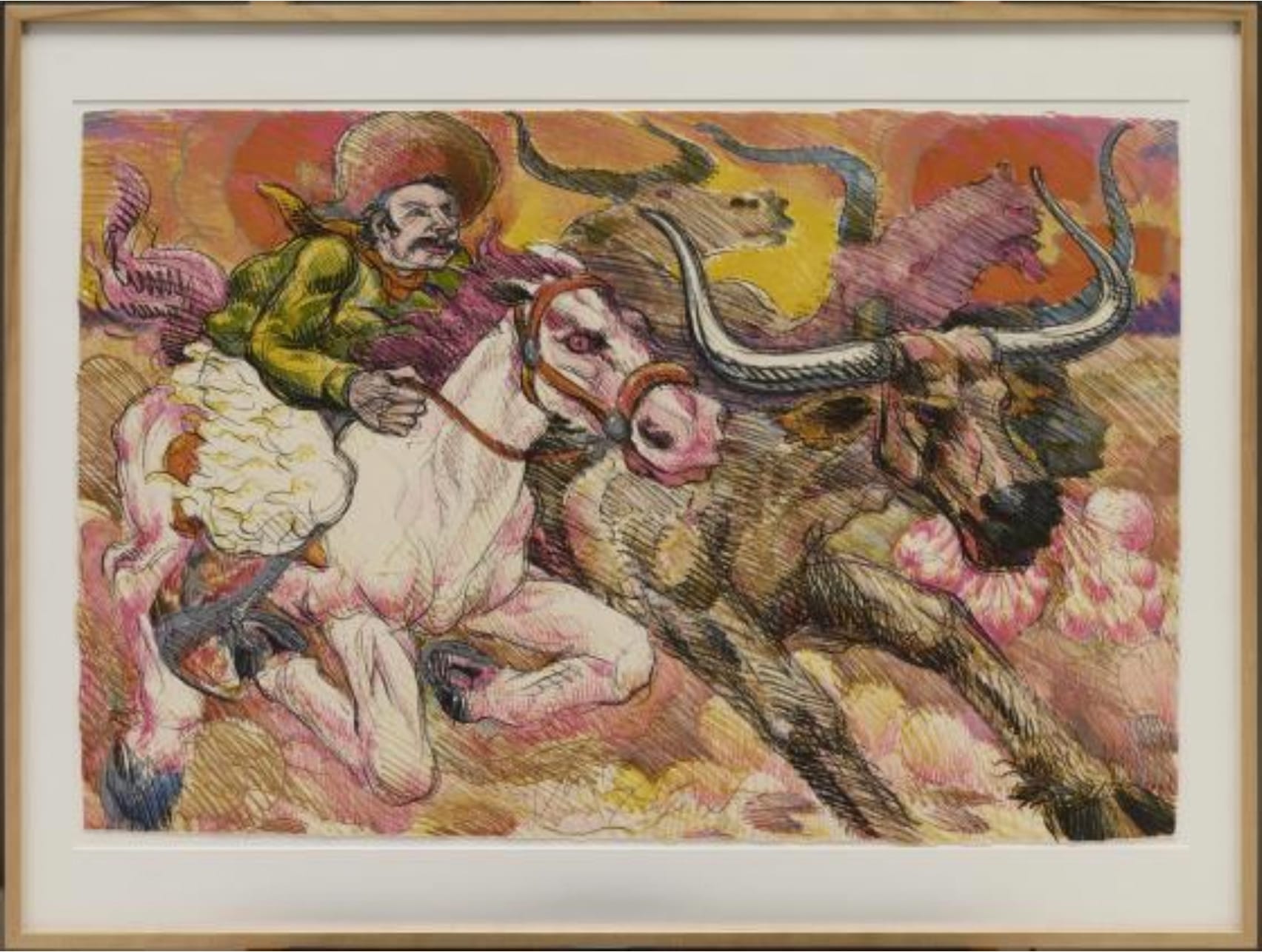The American Southwest was at the center of Jiménez’s life and work. Born to an immigrant family in El Paso, Texas in 1940, the artist grew up in a world dominated by cowboys, cactus, and rattlesnakes, all of which later appeared in his drawings, prints, and fiberglass sculptures. Aside from a brief period when he lived in New York City in the late 1960s, Jiménez spent his career working in the Southwestern region of the United States. Fifteen years after the artist’s tragic death in an accident at his Hondo, New Mexico studio, Border Vision: Luis Jiménez’s Southwest at the Blanton Museum of Art explores the crucial role that this often marginalized and misunderstood place played in his artwork.