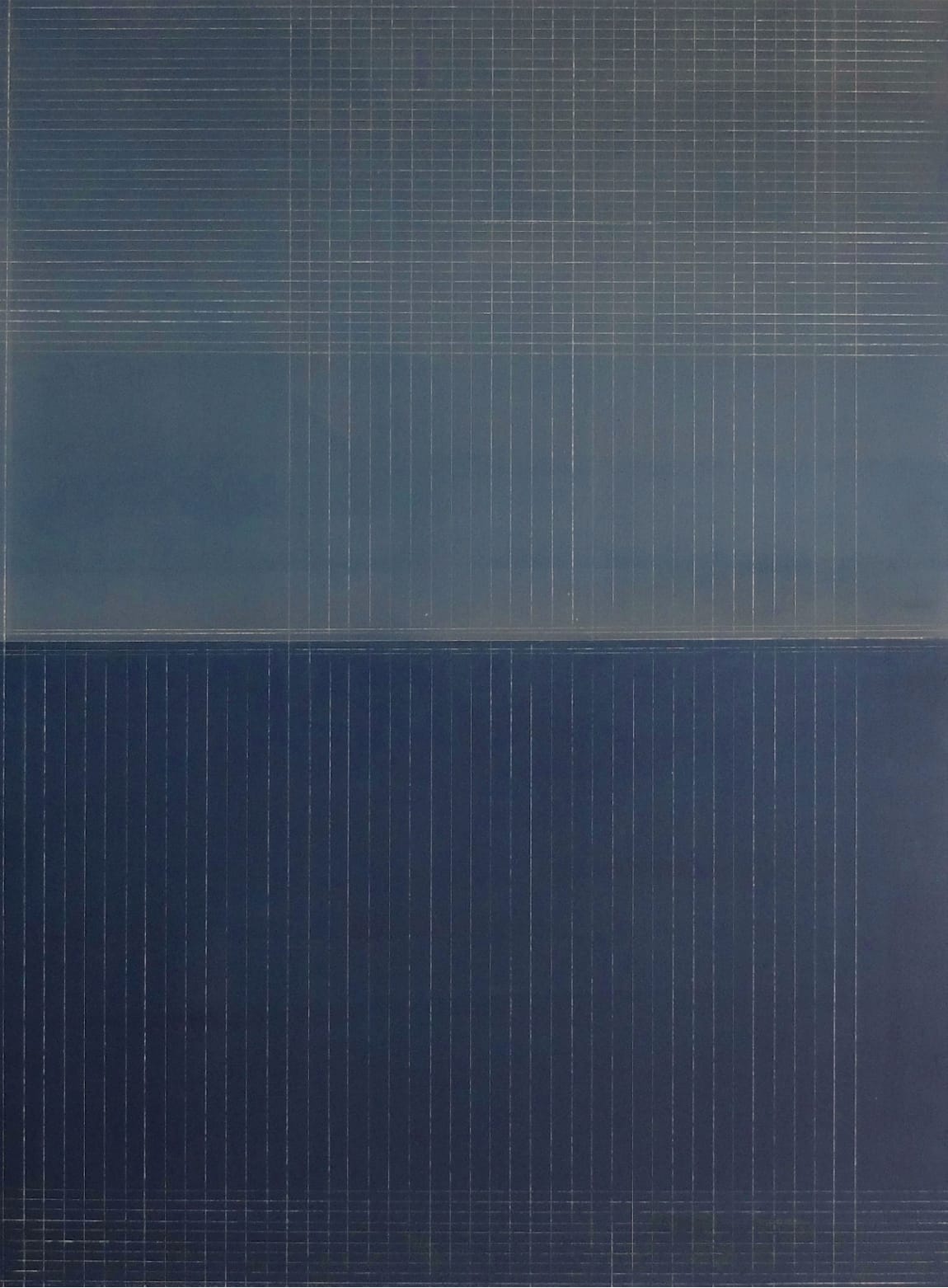 Since the ’80s, Quraishi has been cultivating an abstract visual expression that makes no reference to global abstract art movements. Her paintings suggest an ontological confrontation with memory and mindfulness, and her processes are often intuitive. “I cannot work without an organized studio,” she said. “The process of knowledge-making is immaterial here, it happens in my head and within this space while I am mixing the paints, laying out my boards, and so on. Everything is about the notion of ‘space,’ it is the concept behind my work and my processes.”