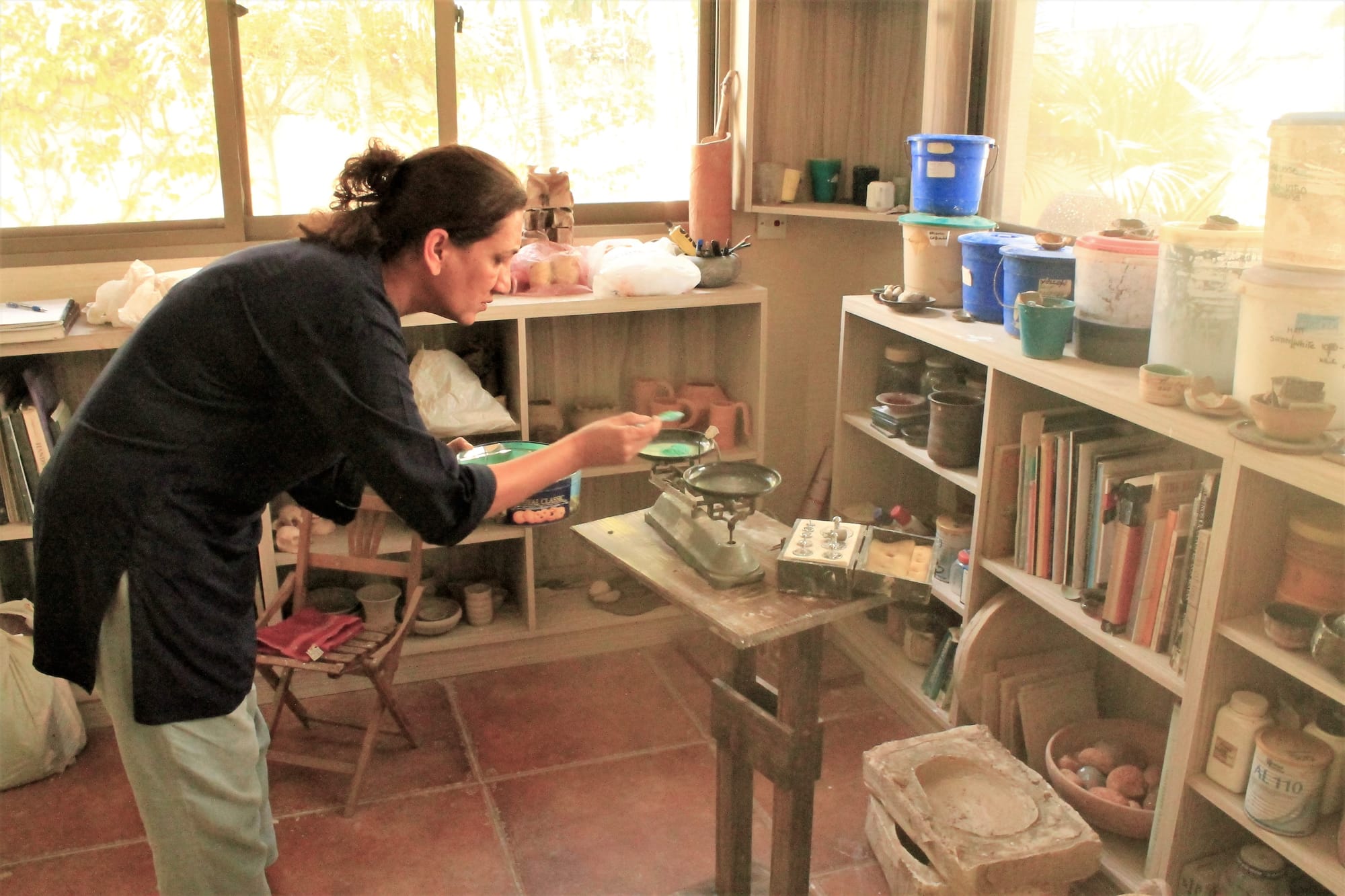 One day in her studio, she showed me a patch of textured, mud-colored grass heaped in one of her ceramic bowls. “Look, the grass from the Deosai Valley, up north,” she told me. “See how it smells?” I poke my nose in it and pick up a faint scent.
