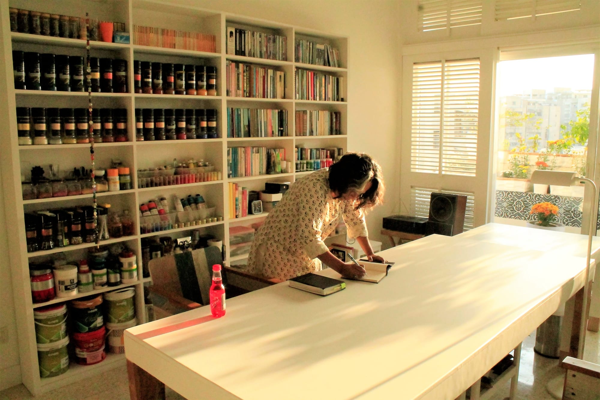 The function of the contemporary Pakistani artist’s studio is unbound. This studio may be an enclosed space (a room, an attic, etc.), or semi-enclosed (a shed, a patio, a garage). Some studios are dimly lit and less-than-glamorous while others may be bright and organized. Not all Karachi-based artists work from such spaces; pantries, stores, or parts of their bedrooms are artistic havens for many. Presently, more Pakistani artists are practicing from their dedicated ateliers than ever before as they engage with historical traditions, modern approaches to imagery, and contemporary manipulation of found objects in the global art scene. Through documenting different studios in Karachi, I realized that idiosyncratic artistic processes converge with artists' unique working environments to influence the artwork — formally and conceptually, and sometimes unbeknownst to the artists themselves.
