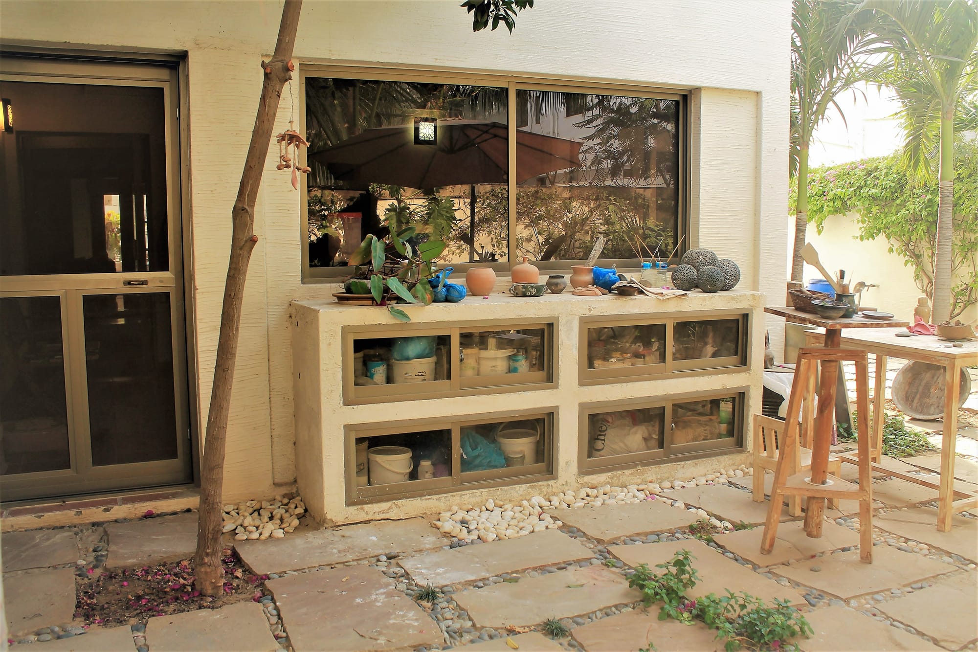 Contemporary artist studios in Karachi prioritize pragmatism; many resist traditional understanding of spaces with singular purposes. Often the studio links art, craft, and design where processes are controlled by the visual artist and professional artisans, yet they also welcome a rethinking of images. Studios also shift to accommodate similarities with contemporary craft-based workshops (where ceramic and embroideries are sources of income for artisans in all Pakistani provinces). Some distinction can be drawn between these practitioners. For instance, a successful craft specialist works within a semi-enclosed “workshop,” where procedures are controlled. To the contrary, a studio ceramicist is engaged with formal and conceptual inquiries of their works, as seen in Zuberi’s ceramic studio that boosts experimental processual knowledge. Finally, studios like Quraishi’s foster theoretical models of artmaking, and ideas of form and space, over the role of materiality.