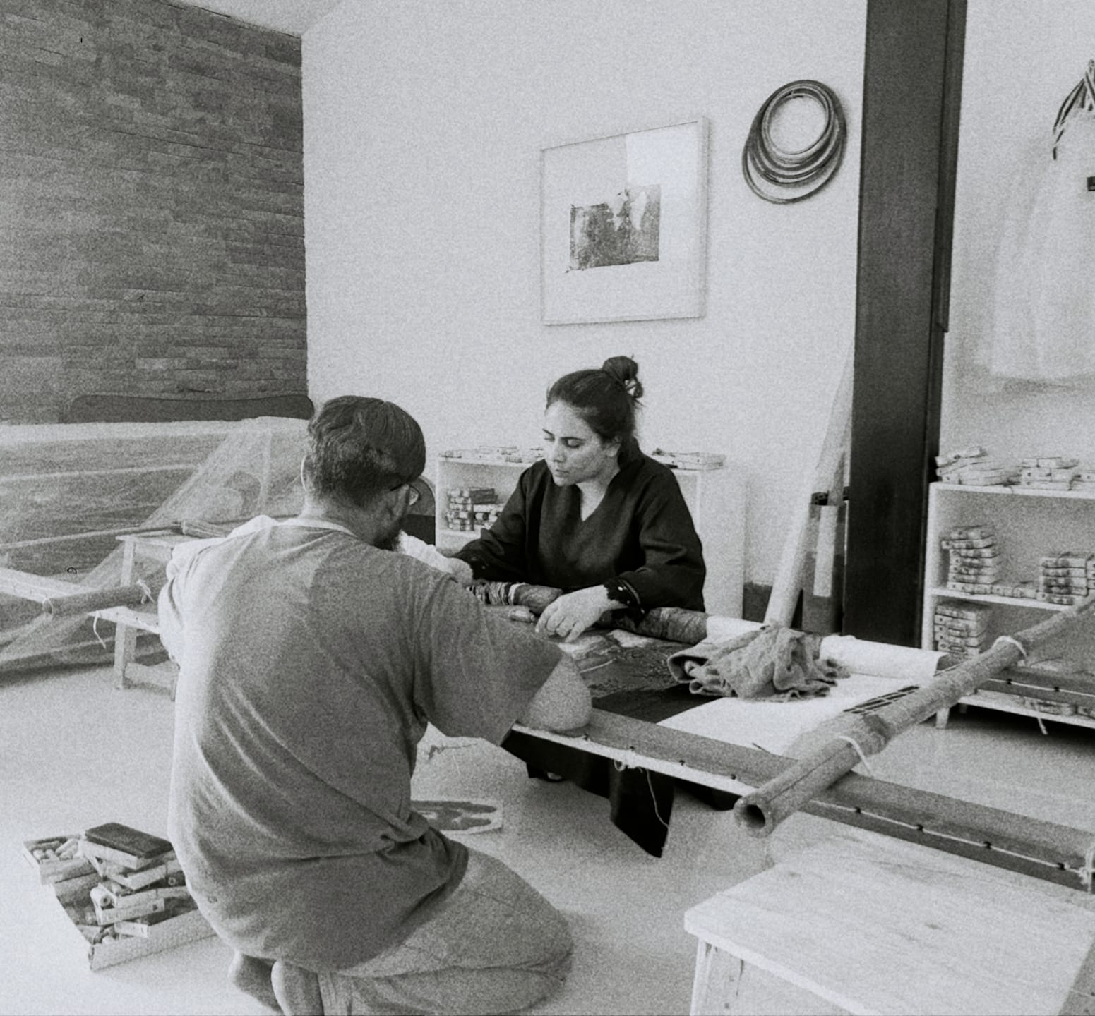 While we chat, she is constantly managing her assistants for her design and clothing lines. “This space is my workshop/factory/atelier where art and work is constantly churned out,” she said. “It has an endless stream of incoming artisans, visitors, photographers, writers, and thinkers.” The physical boundaries demarcating areas for making artworks, artisans, profitable products, and their photography are well drawn; however, their proximity allows overlapping of processual knowledge and interconnected functionality.