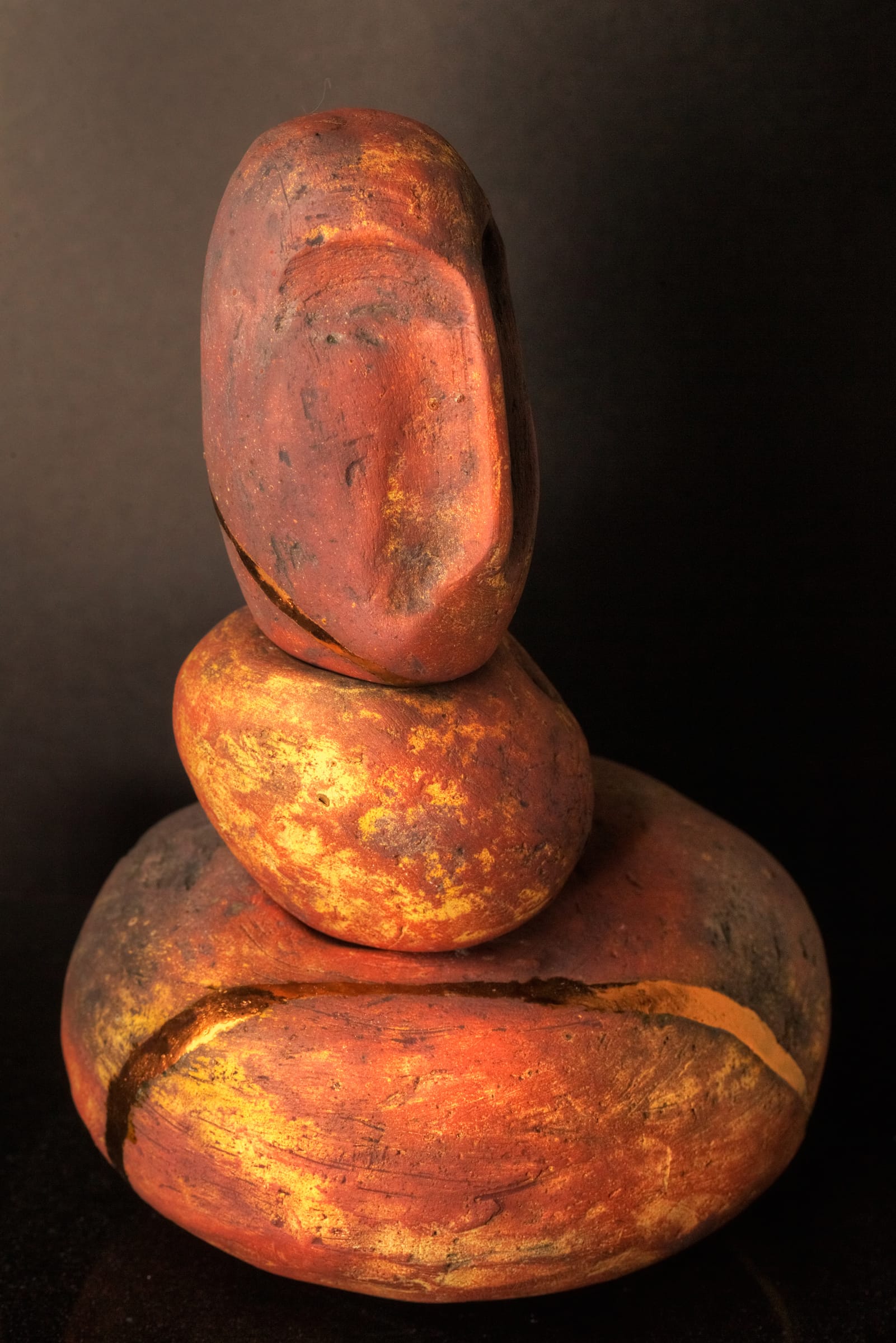 Zuberi’s works, which I like to call “geographical ceramics,” are interventions that weave her travels, map-making, chemical experimentation, and sketches. Evolved from her figurative ceramics in the late ’90s and 2000s, her contemporary stylized, mask-like forms (“the heads”) and glazes on bowls are inspired by her wide journeys within Pakistan.