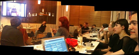 At one point your (notoriously argumentative) commentator picked a fight with an artist. Not to be harsh, but his work did not pass the third grader test. In order for a work to justify its own existence, art must convince me that it could not have been created by an 8 year old. Our conversation started as a pleasant and intellectual exchange of ideas. But as soon as the cameras smelled conflict, we were surrounded as though a heated playground fight just broke out. Like screaming little boys forming a ring around us, the cameras provoked and galled us into a meaner fight. The catty comments flew.