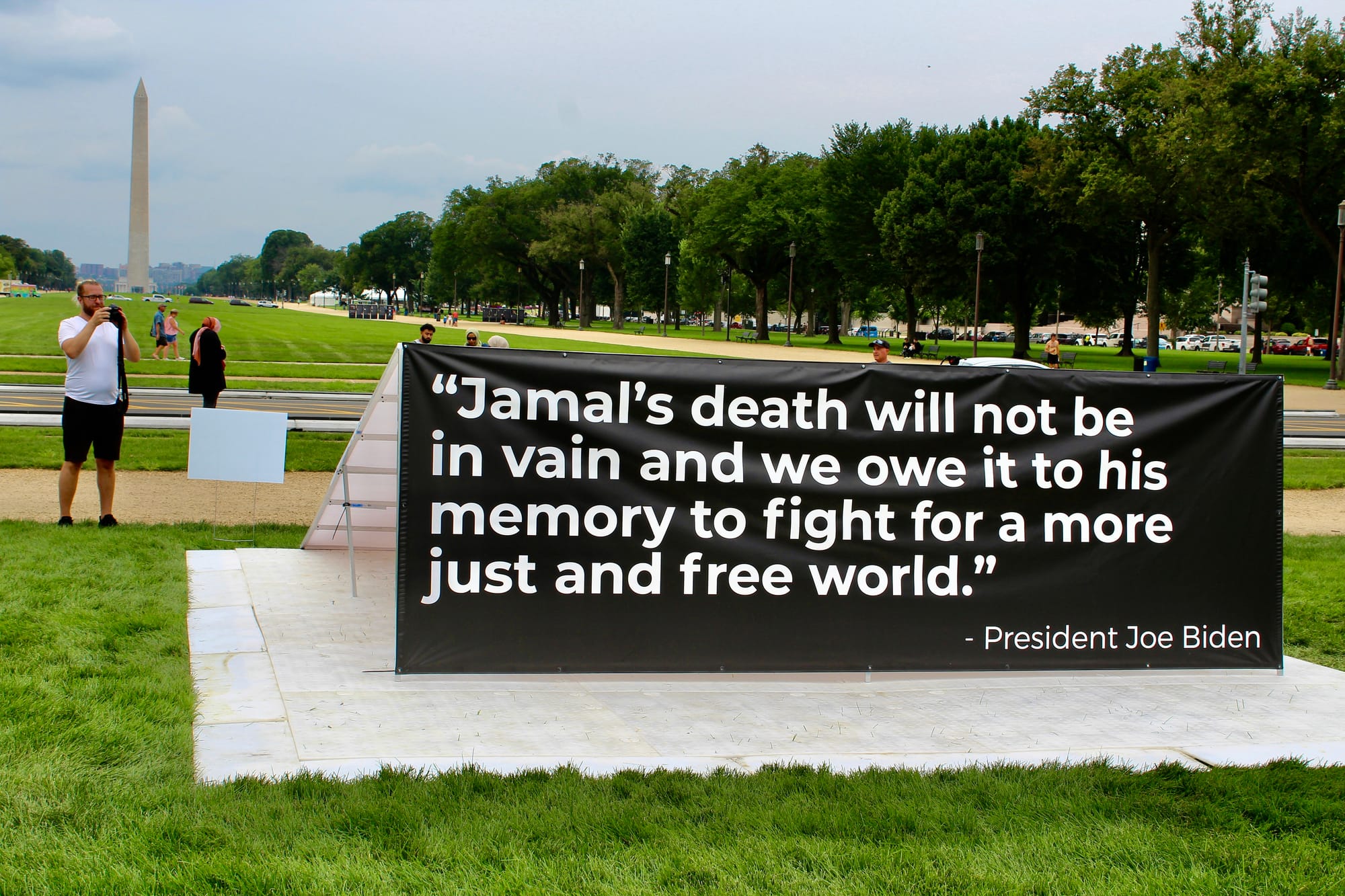 The installation included a sign highlighting a quote by President Joe Biden, saying: "Jamal's death will not be in vain and we owe it to his memory to fight for a more just and free world."