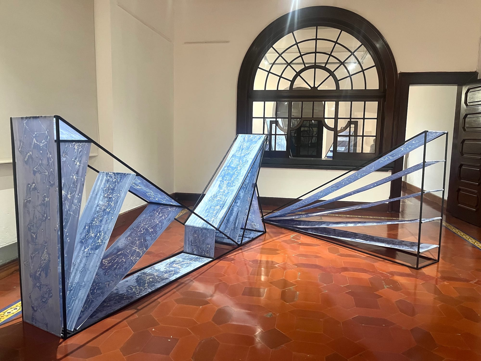 The next two days of the preview were spent in Guatemala City, where the rest of the biennial unfolded. Despite the World Tree theme, several of the works I saw were connected by language, attempting to translate knowledge, information, and elements to a universal tongue. Veronica Riedel transcribed Lake Atitlán into Morse code, while Adji Dieye transposed the importance of the triangle in Mayan culture and mythology with the African architectural fractal.