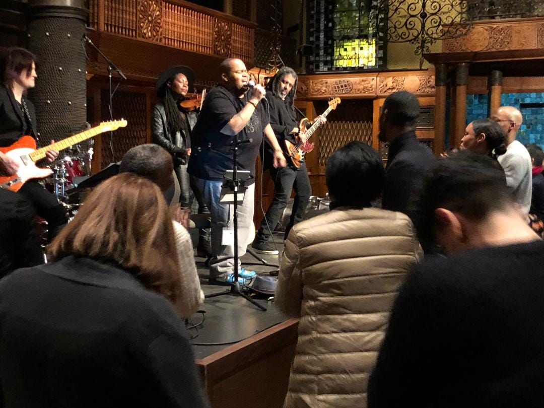 This concert, concluding a long day of panel discussions, reinforced a theme: the need for artists to physically congregate, to make new — and safe — spaces and to enliven these spaces with soul, connection, energy, and spirit. Seldom are these amorphous concerns noted on project proposals, curatorial agendas, or marketing strategies. When one is asked about “intended outcome” on a grant proposal, for example, does anyone answer “spiritual communion, brotherhood, positive energy exchange”?