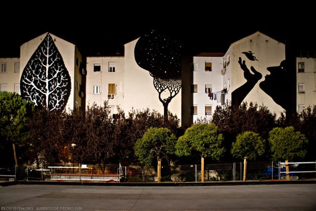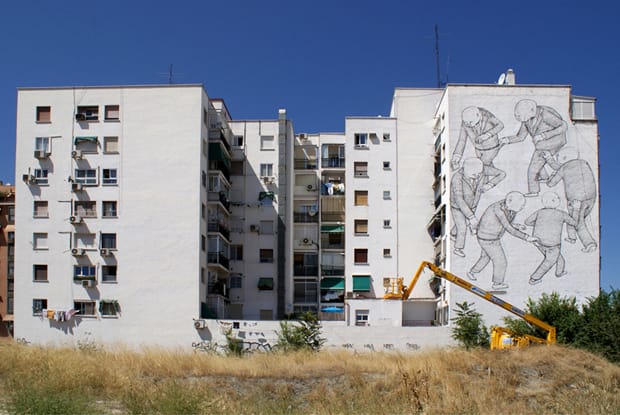 Up till now we’ve only done two murals. We have located over 30 walls in the area of Usera (Madrid) and we have been talking to City Hall for the painting permits; so now we are starting the negotiations between neighbors and artists, and hopefully artists will be getting started on the buildings pretty soon.