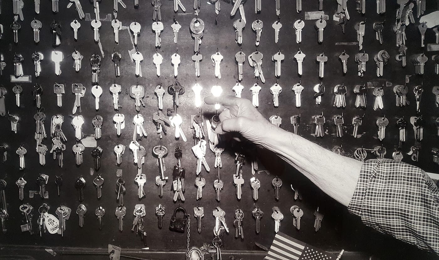Soth’s work fits comfortably within this lineage, as much of it developed via spontaneous interactions on road trips through lesser-run territories in Middle America. He certainly demonstrates an Avedon-esque virtuosity with black-and-white values; selections from Soth’s Songbook series, shot with a Hasselblad camera with a digital back, are so hyper-detailed that they almost pull details out of life that aren’t normally there. Soth has a powerful ability to capture the critical moment of extremely kinetic subjects — a cheerleader in Corsicana, Texas frozen midair at the apex of a toe-touch, her ponytail rising straight above her head; in Kaaterskill Falls, New York, what appears at first glance to be a scenic view of a waterfall contains a male figure in a dead fall so perilous, it could only be achieved by someone with lifelong familiarity in making the dive; even an ostensibly simple tableau of a hand reaching toward a wall of keys at a shop in Savannah, Georgia captures the reflection of light off the keys, behind the extended finger, so as to give a Sistine Chapel sense of gravitas to the gesture.