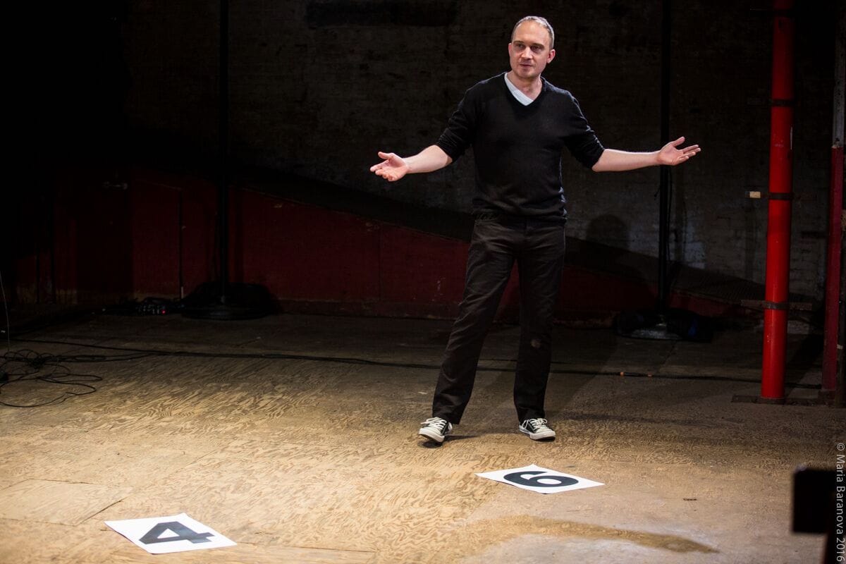 Full of ideas, many of them disturbing, Confirmation, presented at the Invisible Dog Art Center in Brooklyn as part of COIL, explores territory foreign to the festivals’ often sympathetic, identity-affirming tenor. Confirmation is based on interviews conducted by the Manchester-based performer Chris Thorpe with “Glen,” a British right-wing activist. The piece explores the “confirmation bias,” a general tendency for humans to interpret facts in such a way as to confirm existing beliefs, a phenomenon that affects, for example, scientific studies, as researchers misinterpret or overlook contrary data.