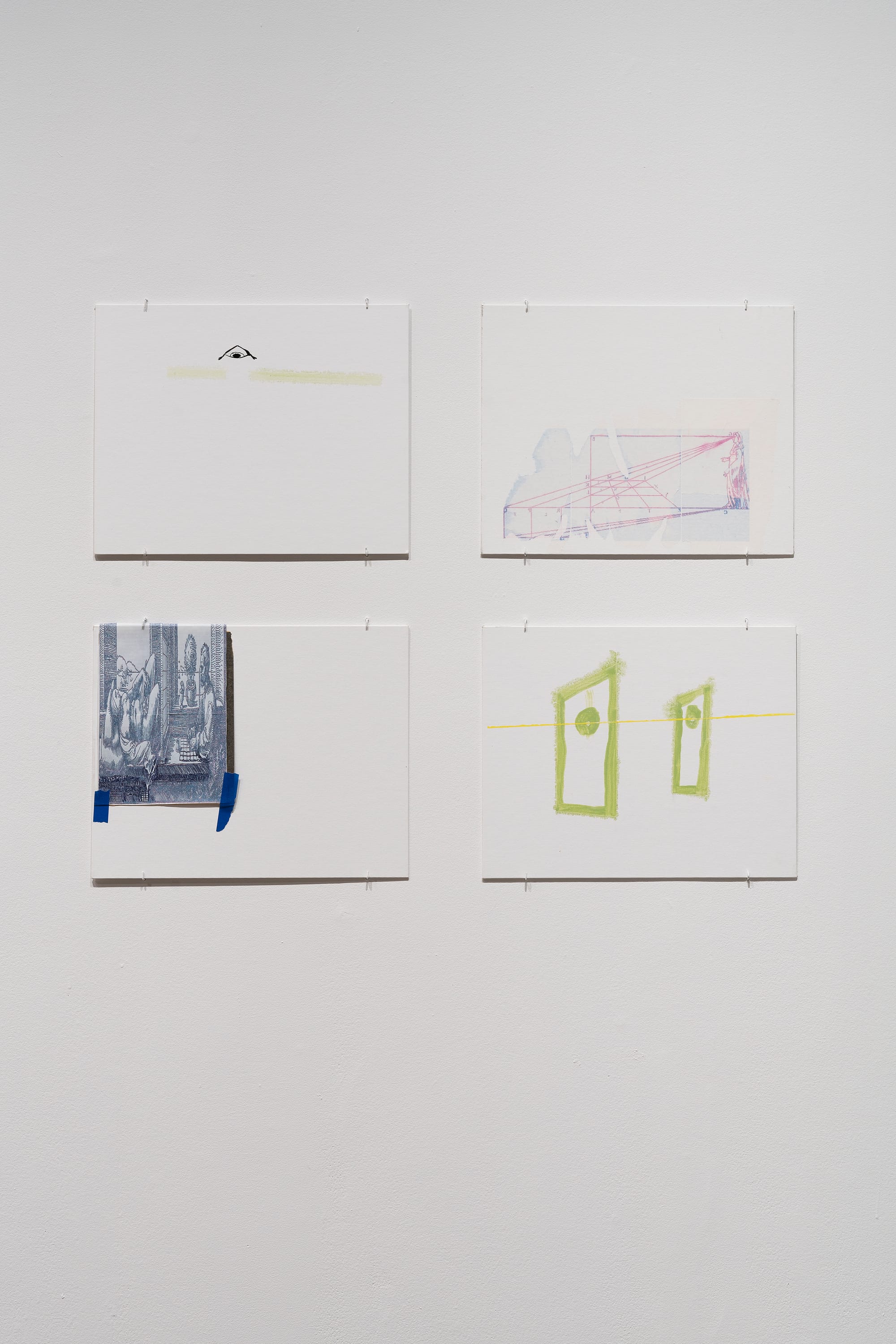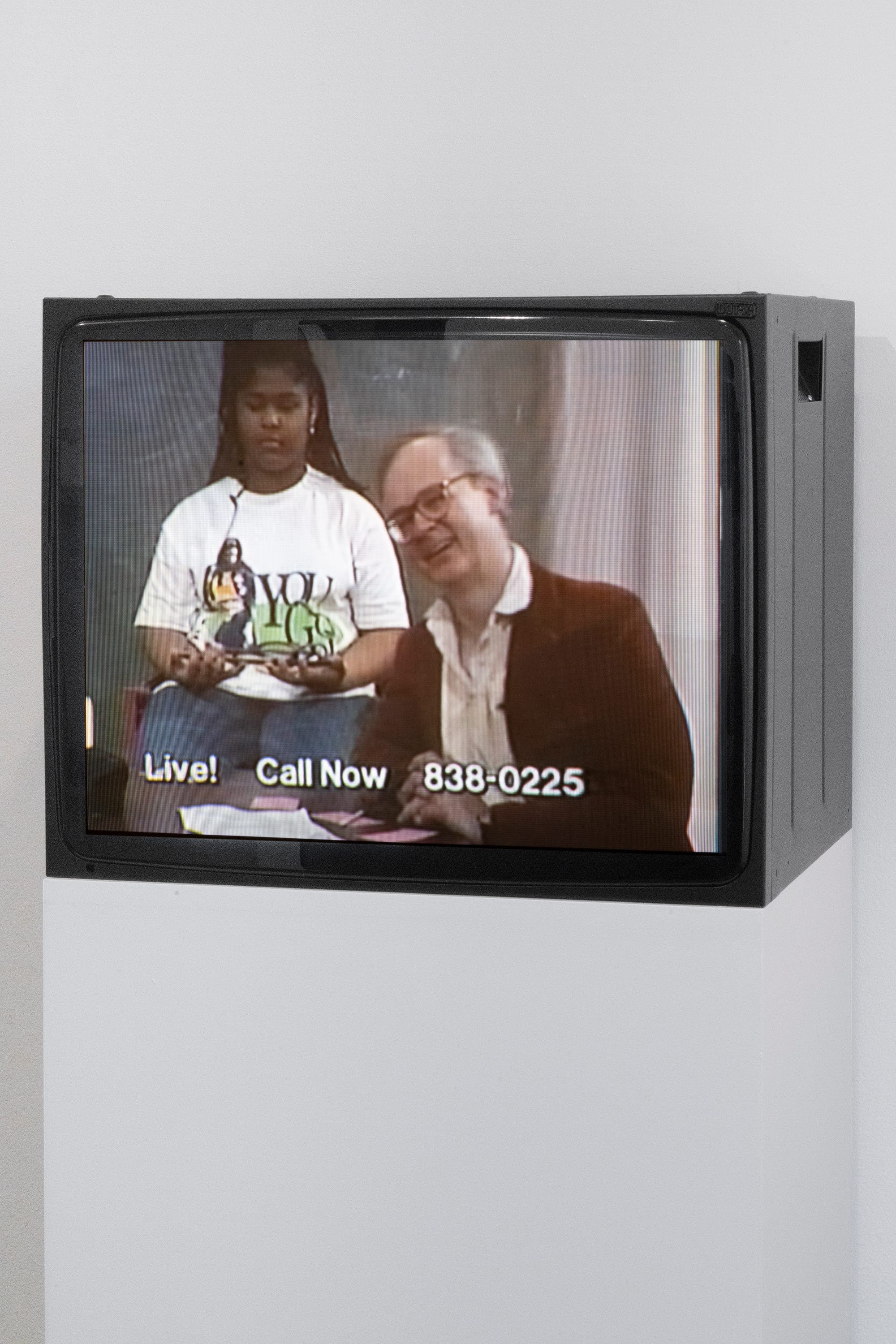 MIT also hosted an evening of live musical performances featuring some of Conrad’s collaborators, such as Henry Flynt and Lary 7, and has devoted significant space to his video work. An installation of the five-channel video installation “Panopticon” (1988) fills a whole room with his efforts to (playfully, as always) note the medium’s potential for creating a surveillance state, while excerpts from a lovely experiment, “Homework Helpline” (1994–95), show Conrad offering live homework help to kids in Buffalo via cable access television — one of several instances in which he took advantage of the cable access format in Buffalo.