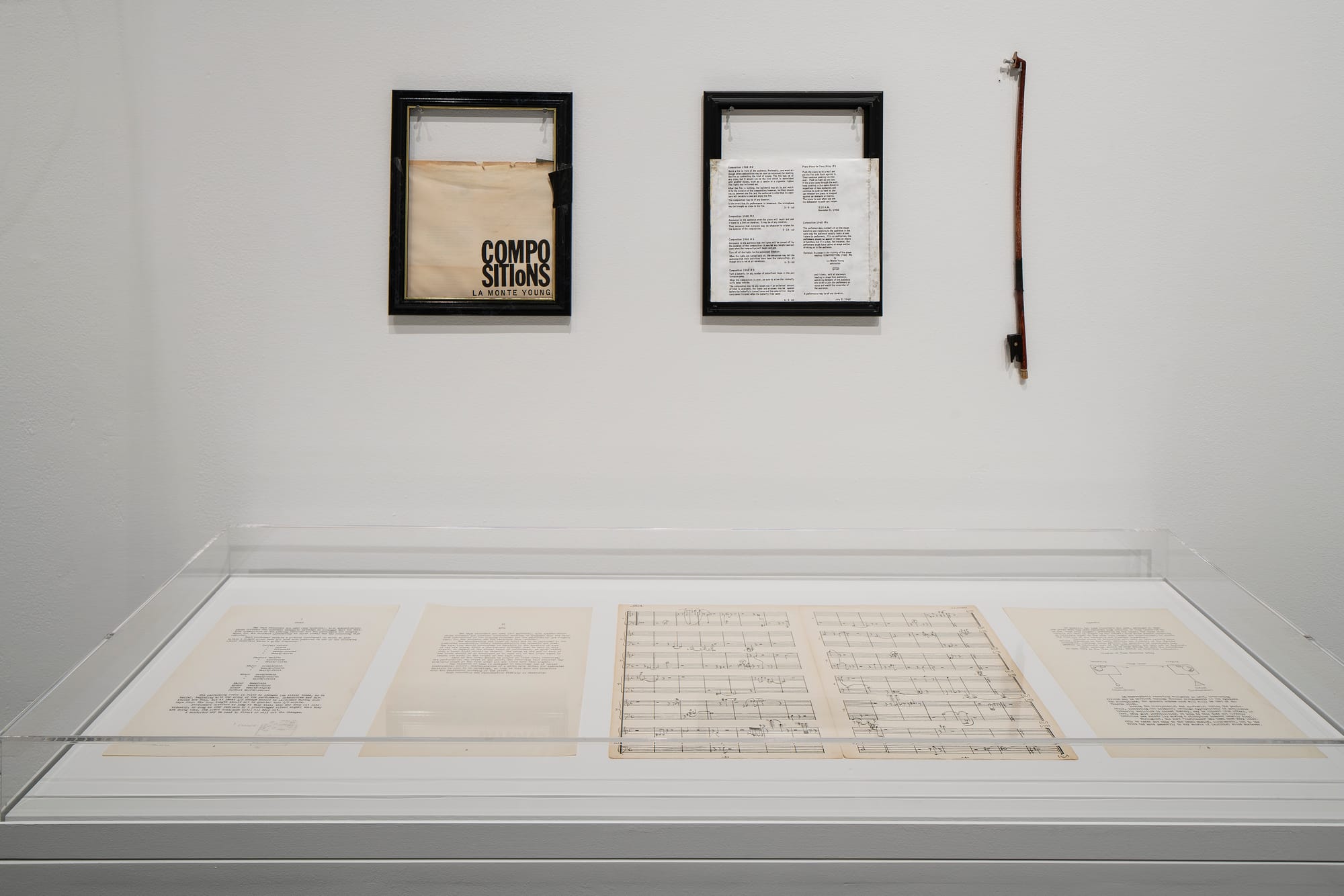 Despite the claim on the MIT List Visual Arts Center website that Conrad’s affiliations span “from Fluxus to the Pictures Generation,” the artist was resistant even to this level of institutional categorization. He is clearly poking fun at markers of underground status when he intentionally did an amateurish job framing a copy of Compositions by his collaborator and Fluxus/avant-garde music luminary, La Monte Young (dated 2002), and when he presented “Sukiyaki Film” (1973) to the experimental film community as a stir-fry — cooking the 16mm film on stage and “projecting” it in the “projectile” sense of the word.