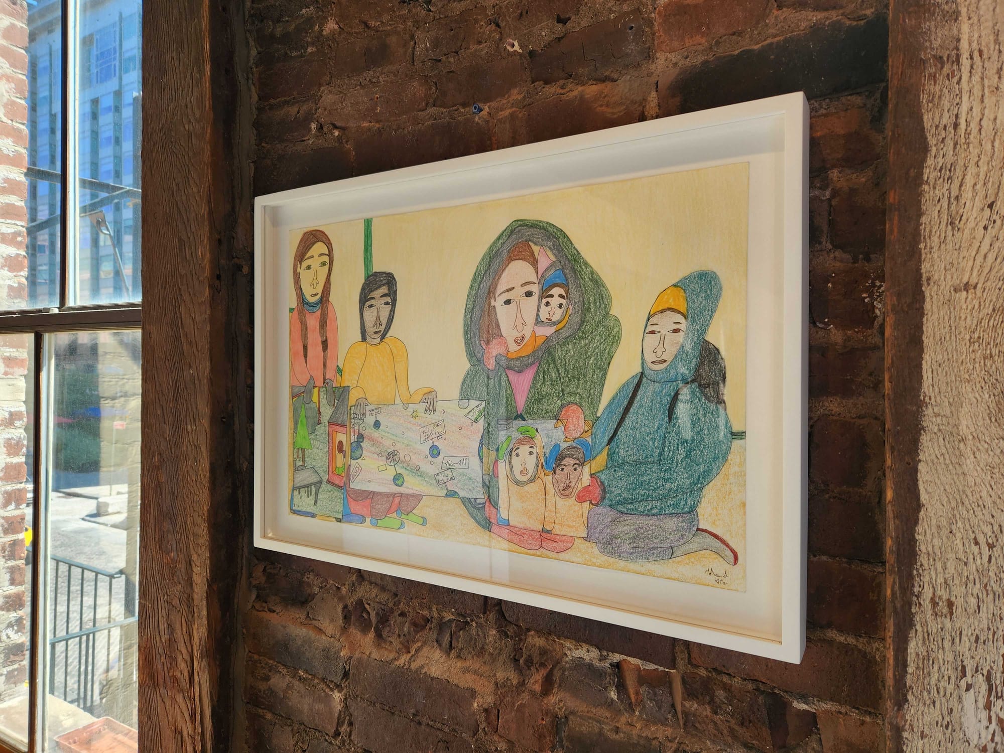 During the in-person remarks at Fort Gansevoort, William Huffman, the organization's marketing manager, shared a refreshingly humorous anecdote in which an Inuk teenager visited the studios on the instruction of his father, who had told him that he "should get a real job and become an artist." More than 400 of the some 1,400 Kinngait residents work in the arts sphere, an astounding percentage that Ashoona highlights in a variety of her own works pertaining to the Kinngait Studios and its members.