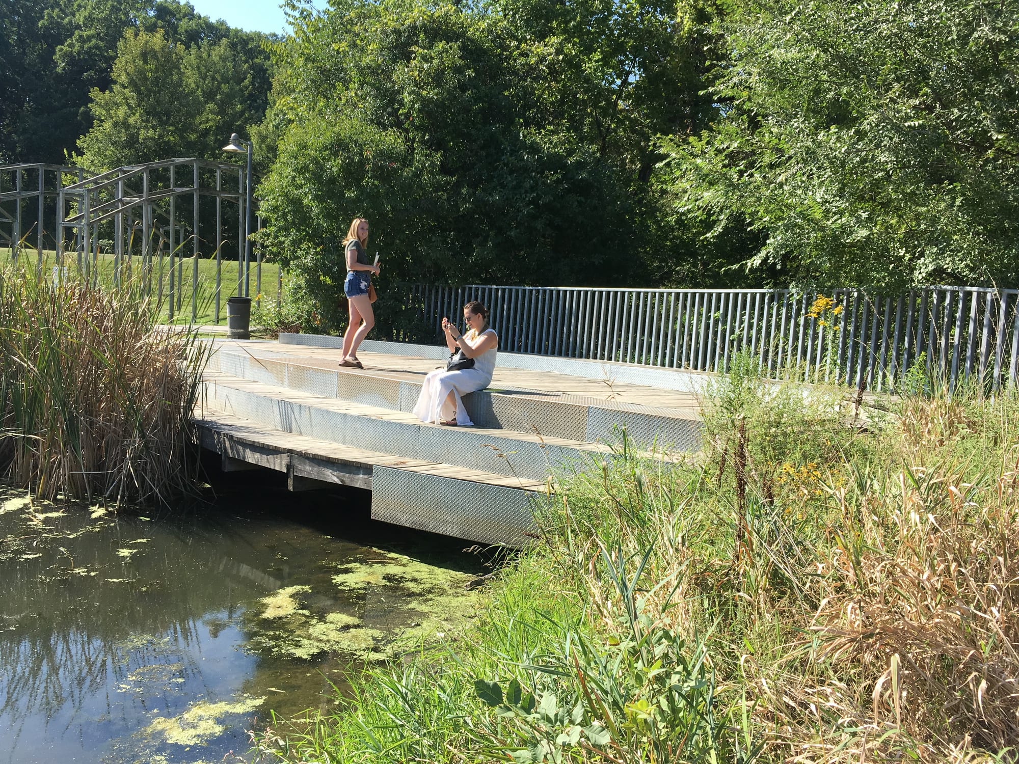 "Greenwood Pond: Double Site" integrated visitors into the park's wetlands through a variety of landscape features that provided different perspectives of the site's ecology. The project took Miss seven years to complete with the help of various local groups, including the Founders' Garden Club, the city's Parks Department, and the Des Moines Science Center.