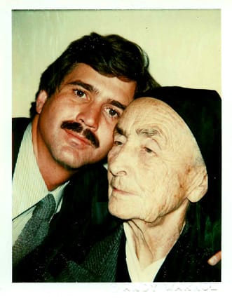 An untitled Polaroid phot by Andy Warhol of artist Georgia O'Keeffe, right, and her confidante, sculptor Juan Hamilton. (via latimes.com)
