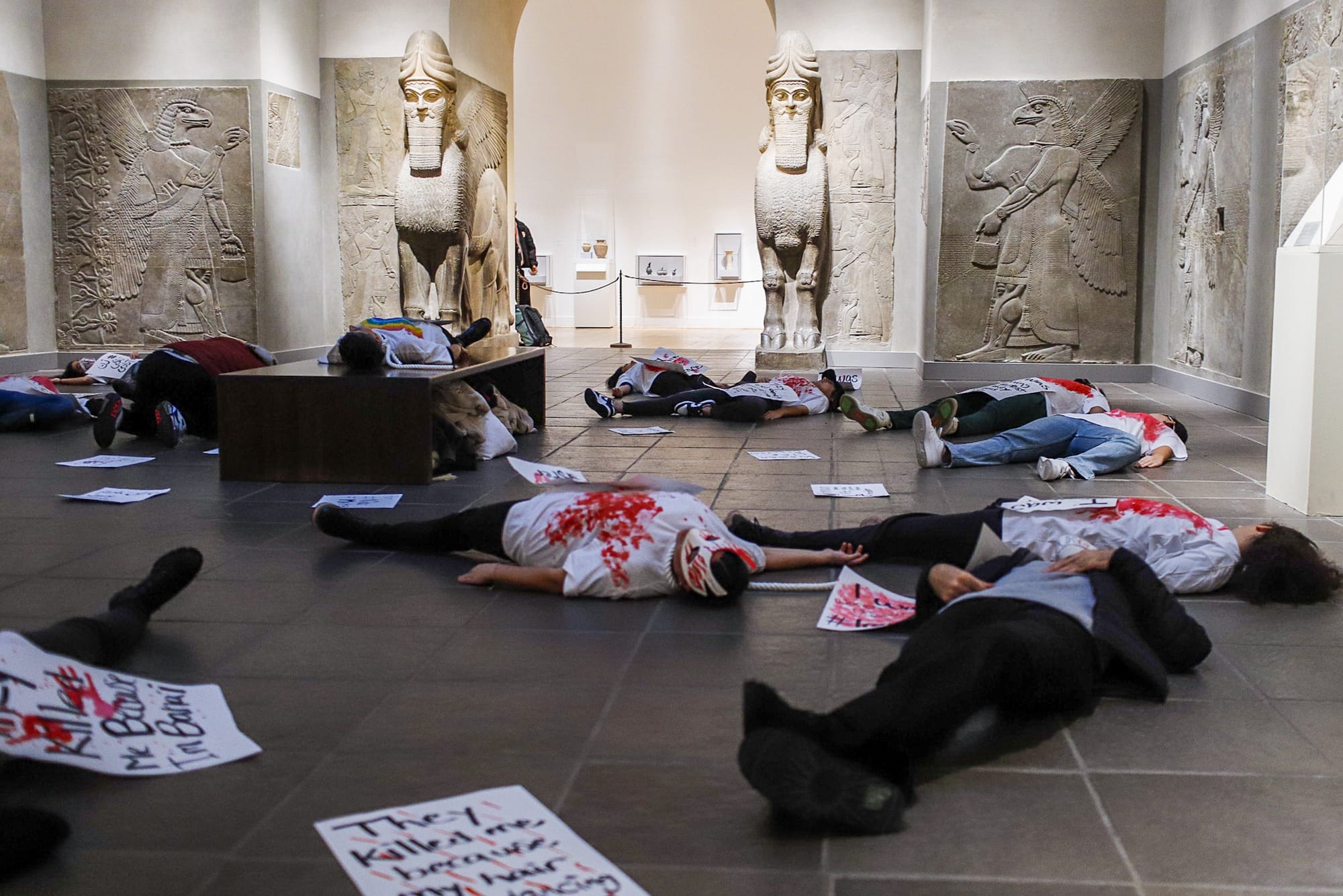 This weekend, more than a dozen activists staged a "die-in" at the Metropolitan Museum of Art's Assyrian Sculpture Court in solidarity with protesters in Iran. The activists were part of Woman Life Freedom NYC, a group committed to amplifying the voices of Iranians amidst months of women-led protests sparked by the murder of 22-year-old Kurdish-Iranian Mahsa (Jina) Amini at the hands of Iran's "morality police" in September.