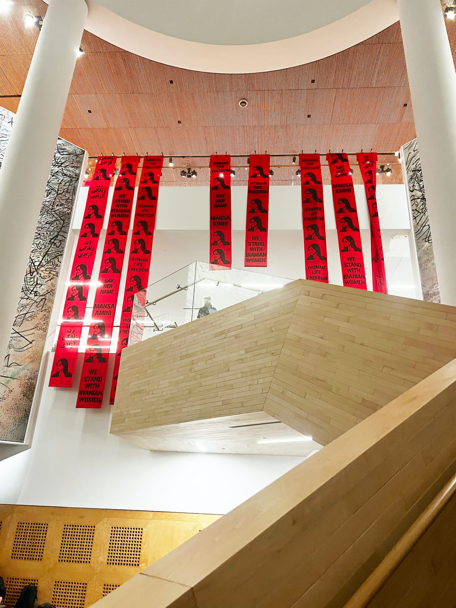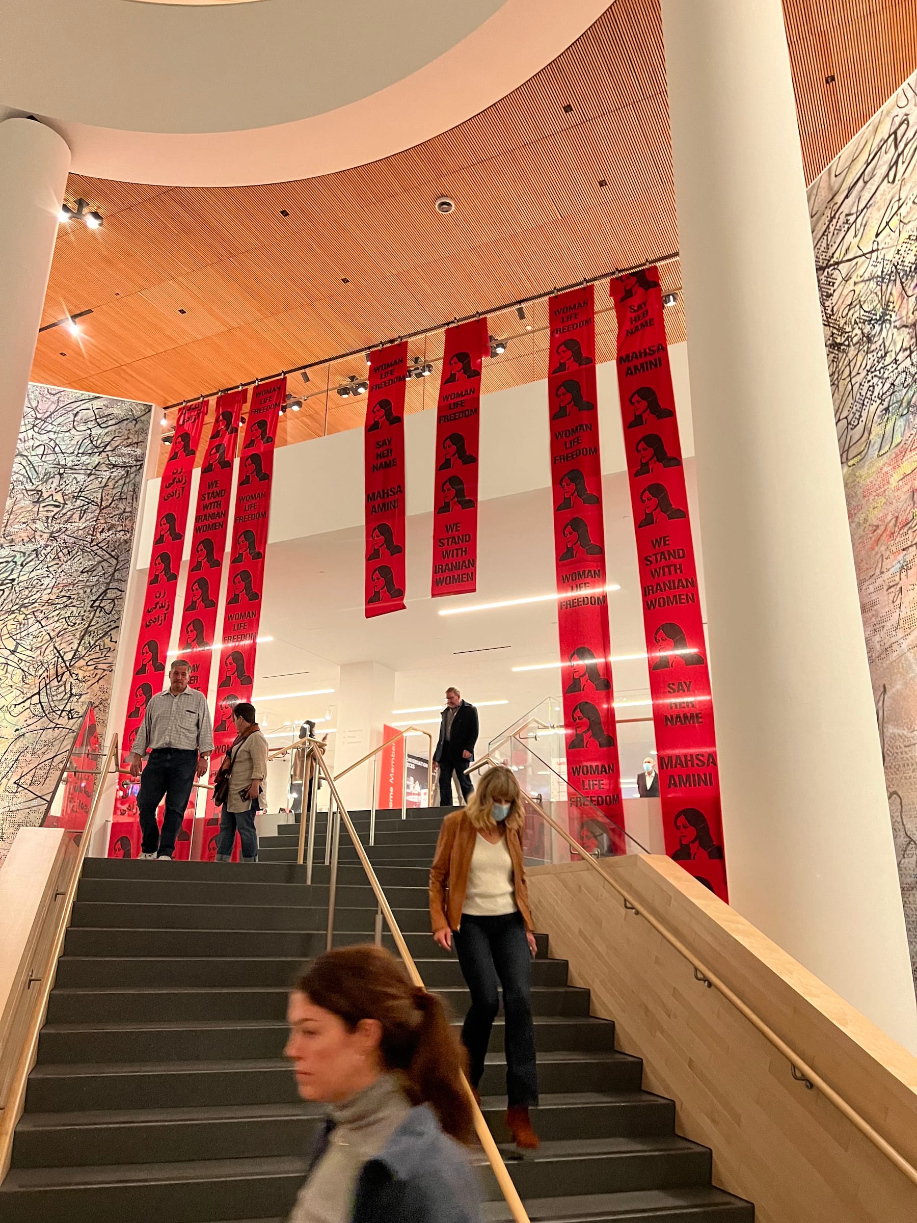 "This was a protest to bring awareness about the current uprising in Iran and the lack of action within art communities and establishments," one of the action's organizers, who preferred to remain anonymous, told Hyperallergic via Instagram direct message. They explained that SFMOMA was chosen because of its position as one of the city's and nation's major art institutions and that the protesters intended to "re-perform" a nearly identical action last month at the Guggenheim Museum in New York City.