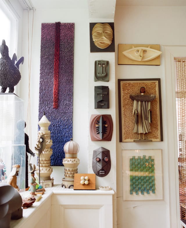 Outside of his home, the sculptures were only shown in a Soho group exhibition, a solo show in Rochester, and one show in his own barn. He explains in the book: “I never sold any of my pieces. I had all the money I wanted. Then I would have lost my sculptures and just had more money. I just wanted to have them around.” On rare occasions, a few treasured friends received them as gifts. As for why he stopped making them, he stated that it was just that his old farmhouse couldn’t hold anymore.