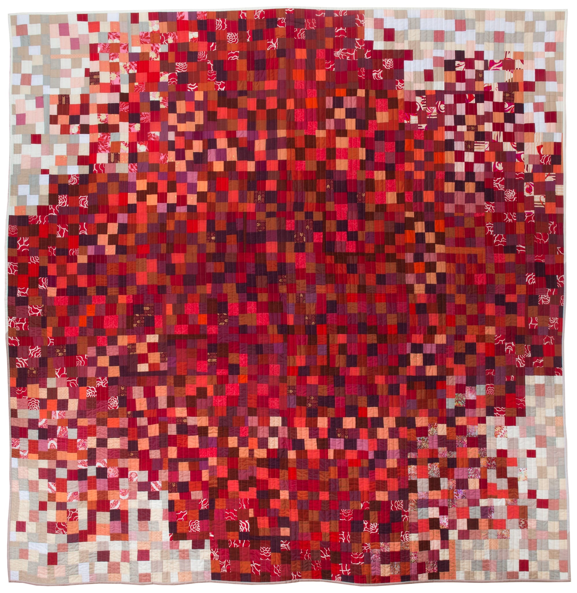 The juried exhibition, Color in Context: Red, debuted at Houston’s International Quilt Festival in 2023 and toured several fairs in Australia last year. The American Quilter’s Society, which claims to be the “world’s largest quilting membership organization,” signed a contract with SAQA last August to exhibit Color in Context at quilting shows across the country. Through this partnership, the works were slated to travel to Florida, Missouri, Kentucky, Michigan, and Pennsylvania between mid-February and September.
