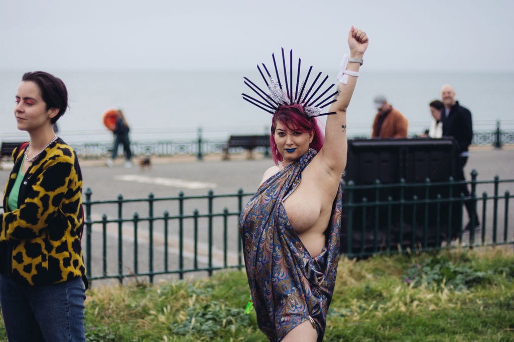 Bee Nicholls, founder of Free the Nipple Brighton, worries about the alienating nature of the popular image of the movement. “Given that the bodies of young women are overrepresented in the media it’s important that Free the Nipple too doesn’t become centered on them,” she told Hyperallergic.