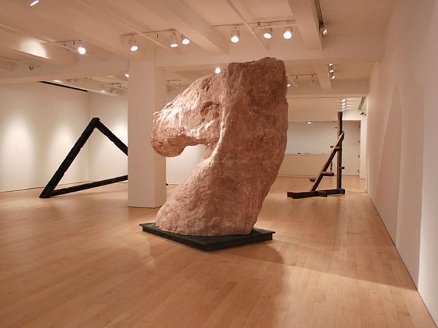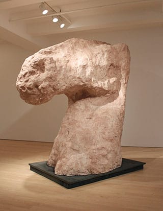 Such a change in tone contradicts the most mesmerizing aspect of the abstractions, which is their simultaneous repudiation and embrace of sculptural tradition. By hewing so closely to that tradition’s raw materials, these unlovely objects court the status of anti-art while reaffirming their material’s inherent power.