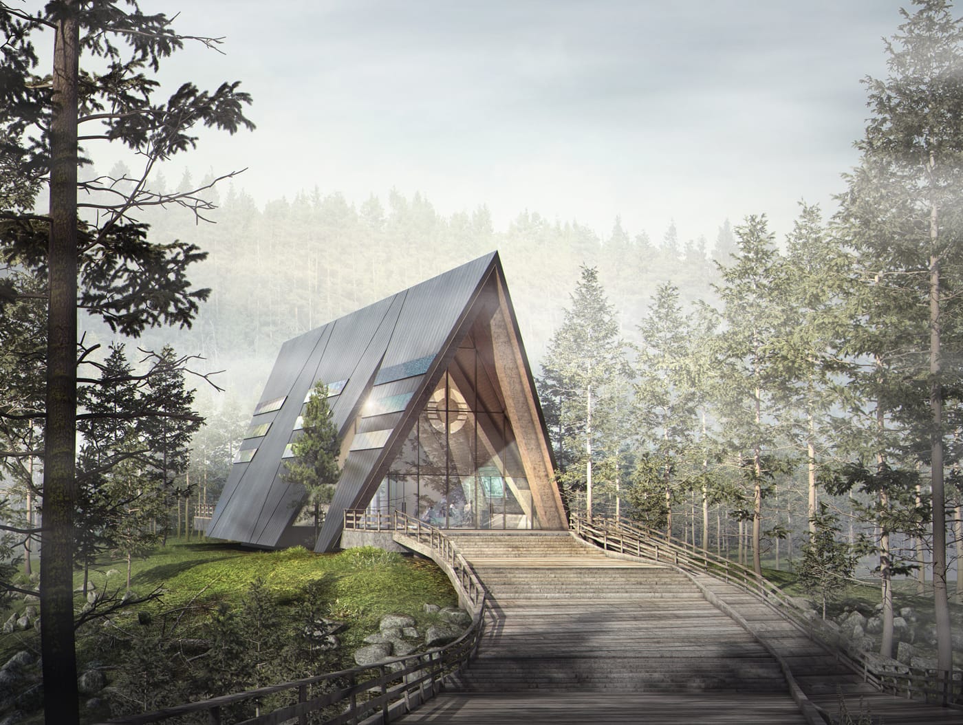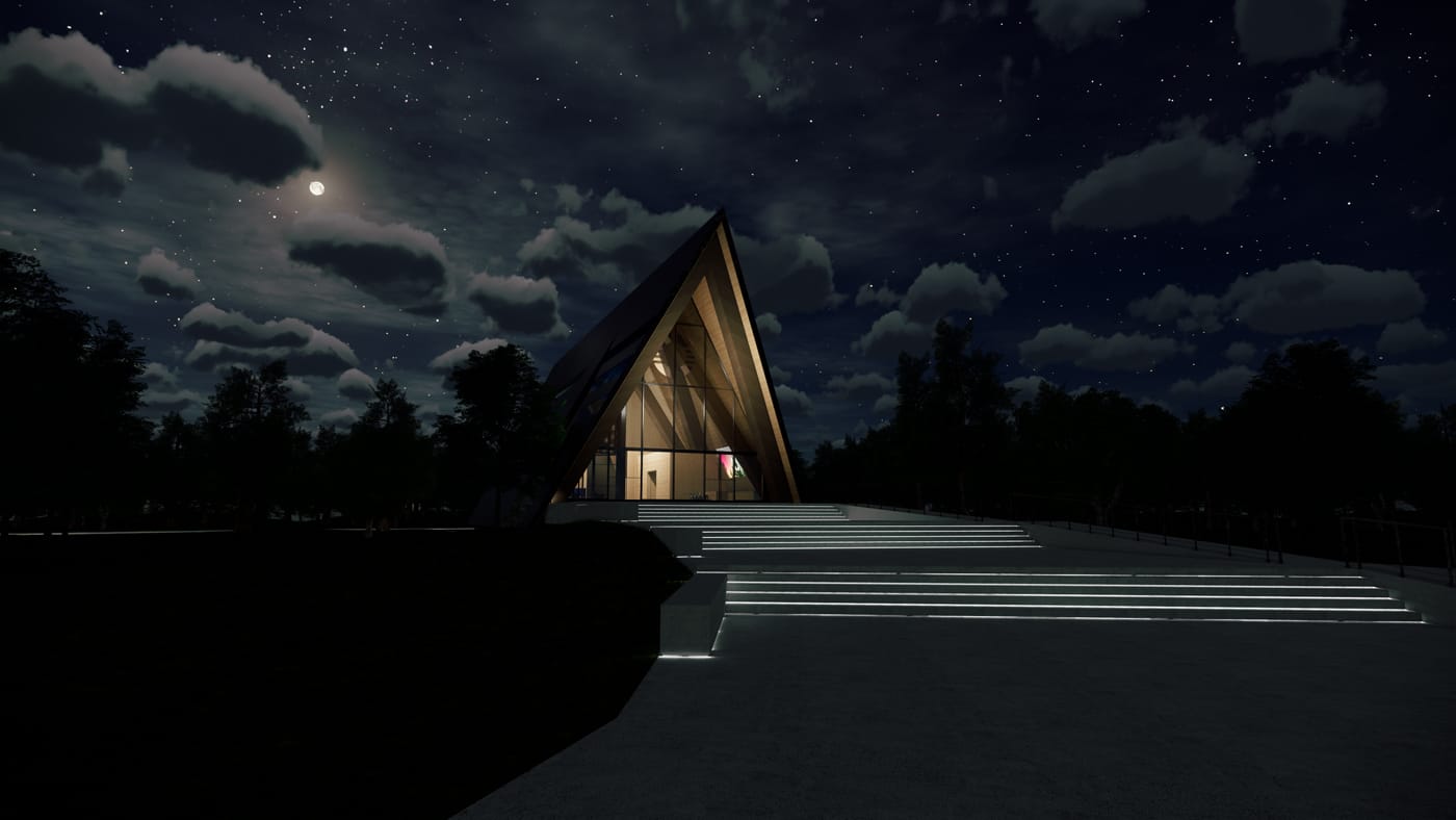 The company employed Gensler to home in on the vision they had for the structure, and settled on an A-frame structure that ties together a number of cultural references, practical considerations, and space efficiencies for Aurora. The team was inspired by structures including the United States Air Force Academy Cadet Chapel, and feedback on the design has likened the smooth, vaulted triangular construction to a building from Star Wars, a cathedral, a Swiss chalet … and even a few less elevated notions.