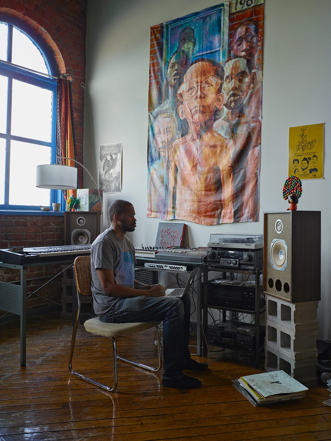 “Slowly, musicians opened up their spaces [to us], shared their stories and directed us to specific places in the landscape they thought significant,” Diggs said. In one photo, musician Jay Daniel’s keyboards are set up next to his small, sunny kitchen; in another, Donald Lee Roland II sings in the padded nook of his rehearsal space, a home he inherited from his mother. The book grants us rare access to these creative and domestic spaces where intimacy, experimentation, and innovation intertwine.