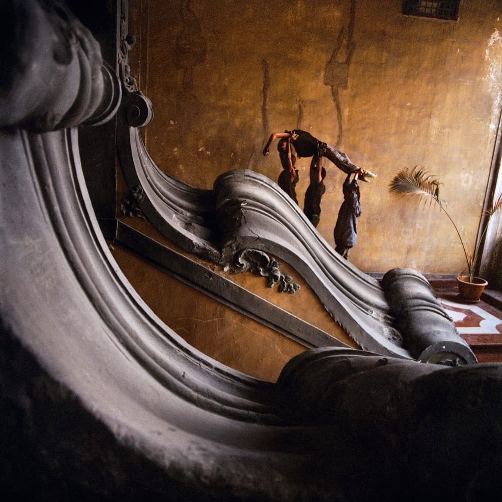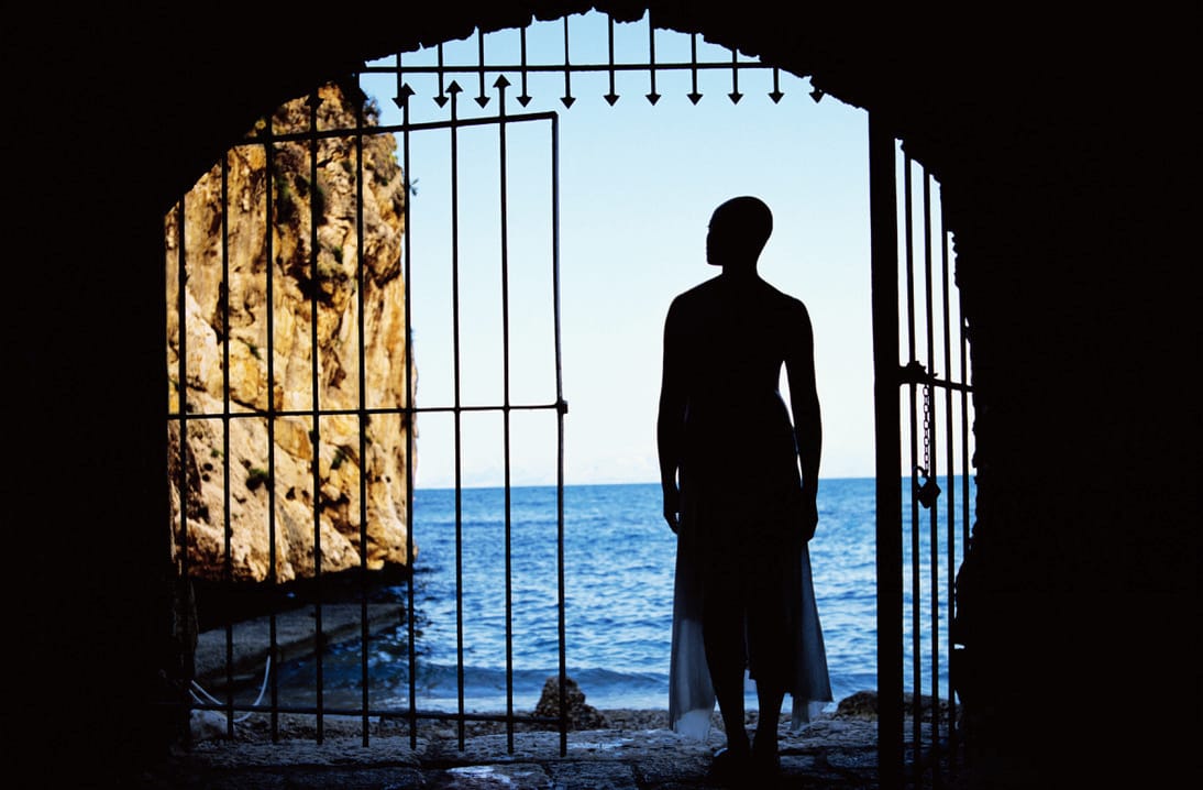In Western Union, the body is vitally expressive in Julien’s multiracial company of dancers. They process with somber poise and grace along Lampedusa’s white cliffs or up the stone steps of the palace. Their coordinated movement — at times funereal, at others frenzied — commands rapt attention, rather than pity.