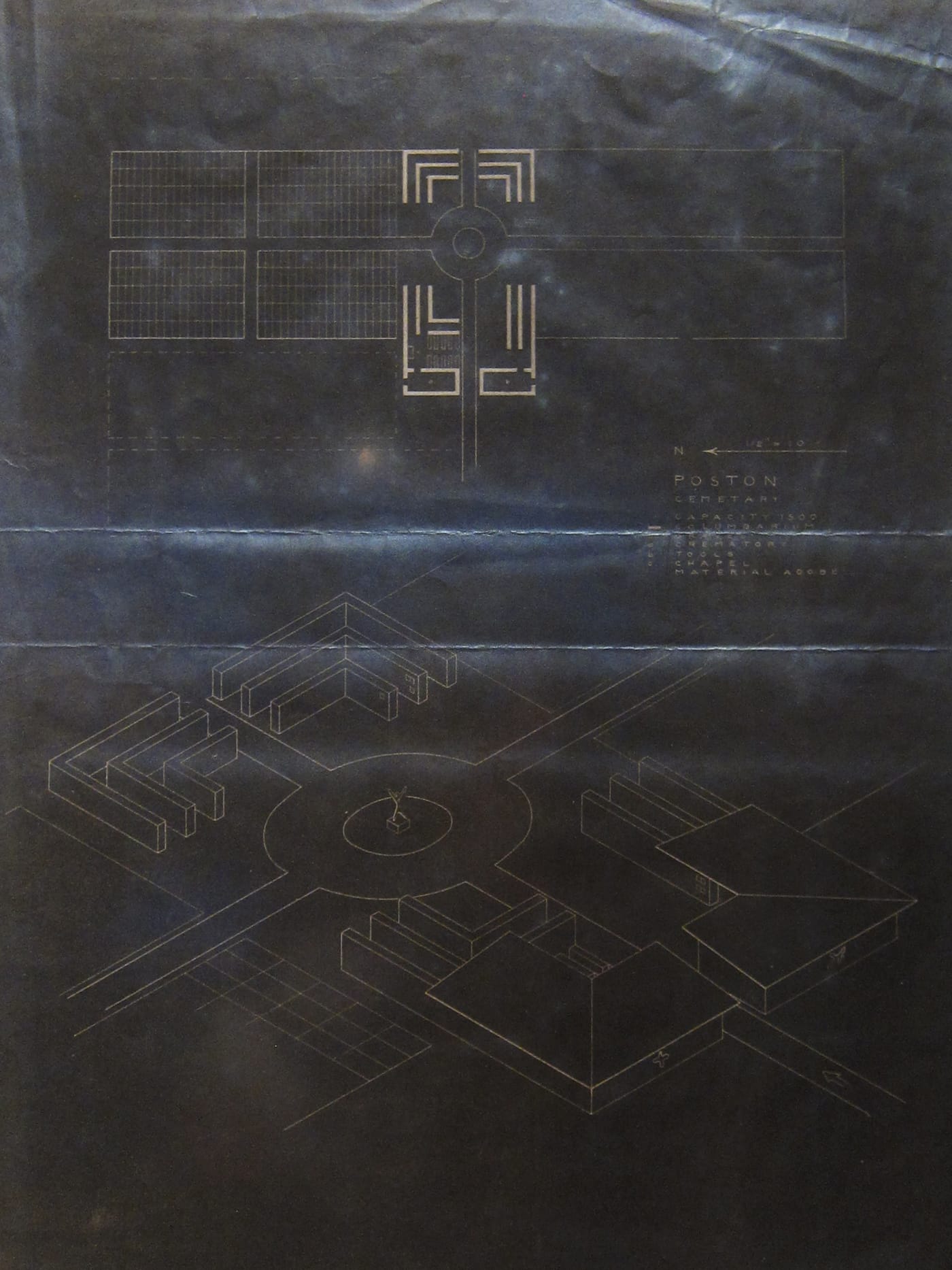 Isamu Noguchi, detail of 1942 blueprint of Poston cemetery