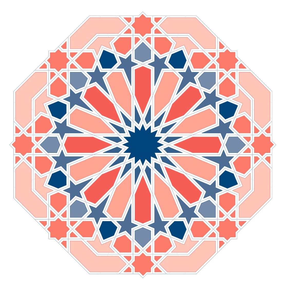 The fusion of mathematics with visual expression in these designs has had its influence on work outside Islamic art, such as M. C. Escher’s tessellations. And a tactile understanding of their careful planning and workmanship also reinforces the connection between the spiritual and the scientific in many of these structures. As Broug writes of experimenting with the designs, they will “reward you, every now and then, by revealing the harmony of geometry and symmetry.”